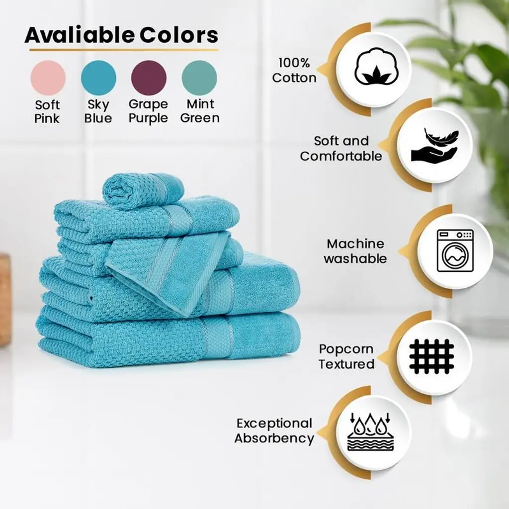 Get Your Hands on Our Popcorn Pattern Hand Towel - The Perfect Snack for Your Hands! With the help of Ample Décor bath towels, bathing and washing are now more enjoyable than ever. A fun and beautiful addition to any bathroom, guest room or kitchen is our brand-new Mulaayam collection Popcorn Pattern hand towel. This towel is made of soft, absorbent cotton and is perfect for cleaning up spills or using to dry hands. The way the hand towels are made increases their surface area on both sides, absorbency, and the number of wipes needed for drying your hands and body. This towel is a useful and fashionable option for daily usage because the premium fabric helps with durability and ease of upkeep. Features: - Brand: - Ample Decor Material: - 100% Cotton GSM: - 550 GSM Pattern: - Popcorn Pattern Set Content: - Set of 12 Hand Towels Dimension: - 18 X 28 Inch Machine Washable DISCLAIMER: Due to variations in screen settings, color profiles, and calibration, colors exhibited on electronic devices like computer displays, smartphones, or tablets may not be accurately represented. As a result, colors may not show exactly as they do on some devices.