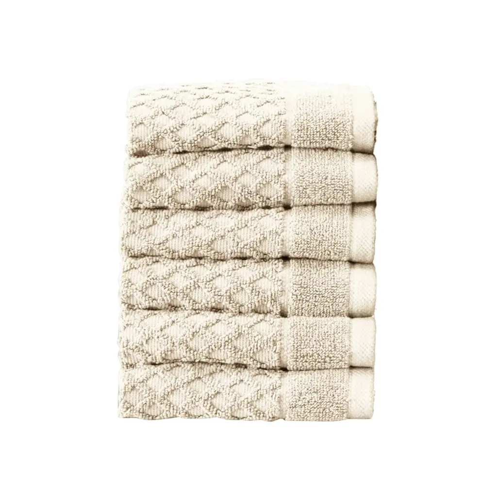 Isla Jade 6Pc Diamond Textured Hand Towels Set Oatmeal