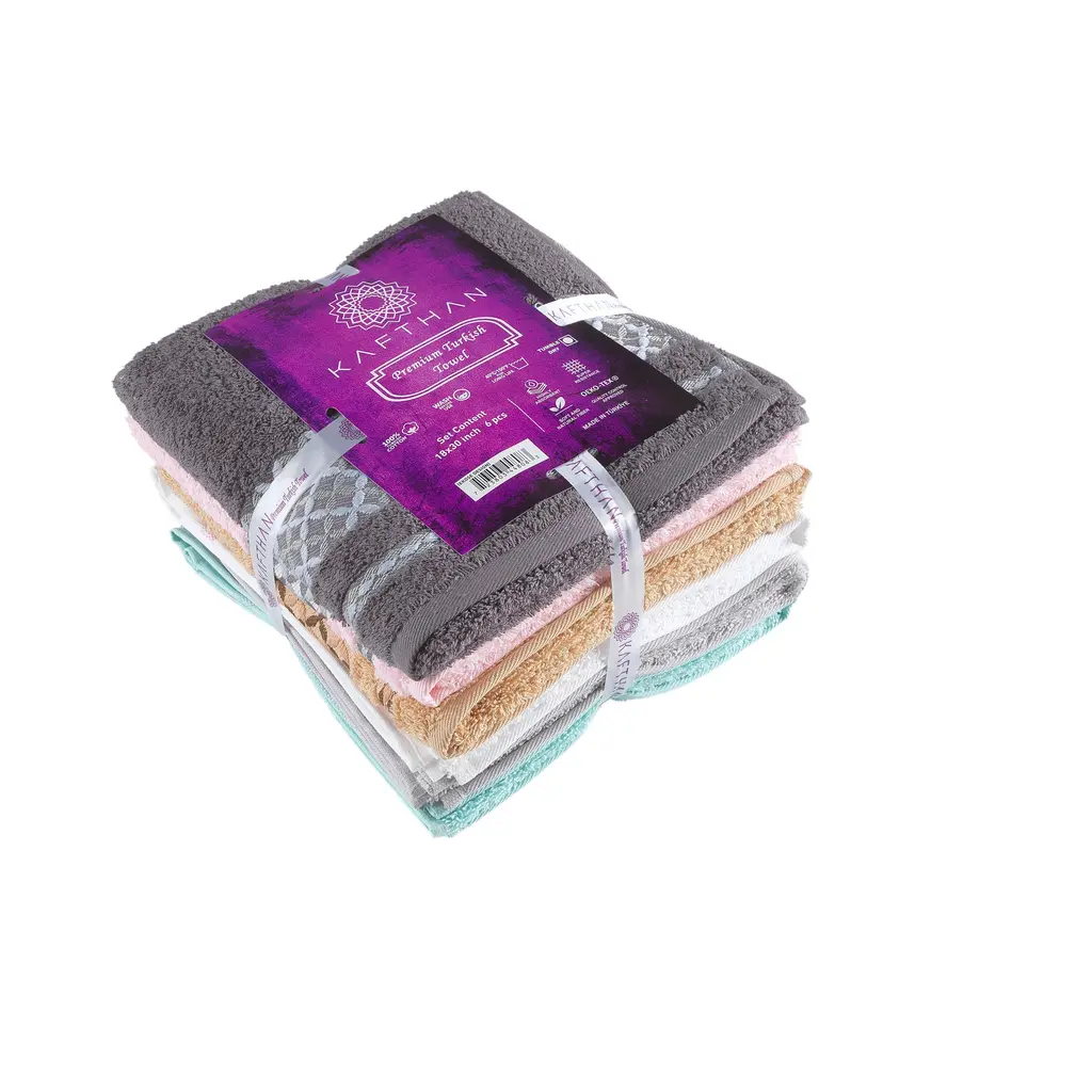 Graphically gorgeous, KAFTHAN's hand/face/hair towels feature sophisticated Byzantium and Ottoman motifs in various colors. They are made in Turkey with premium 100% Turkish cotton for luxurious softness and exceptional absorbency. The set is composed of 6 XL 600 GSM face, hair & hand towels (18"x 30"). KAFTHAN's towels are manufactured in an OEKO-TEX Standard 100 factory, an independent certification system that ensures textiles meet high safety and environmental standard Care: Machine washable and tumble dry.Features:
