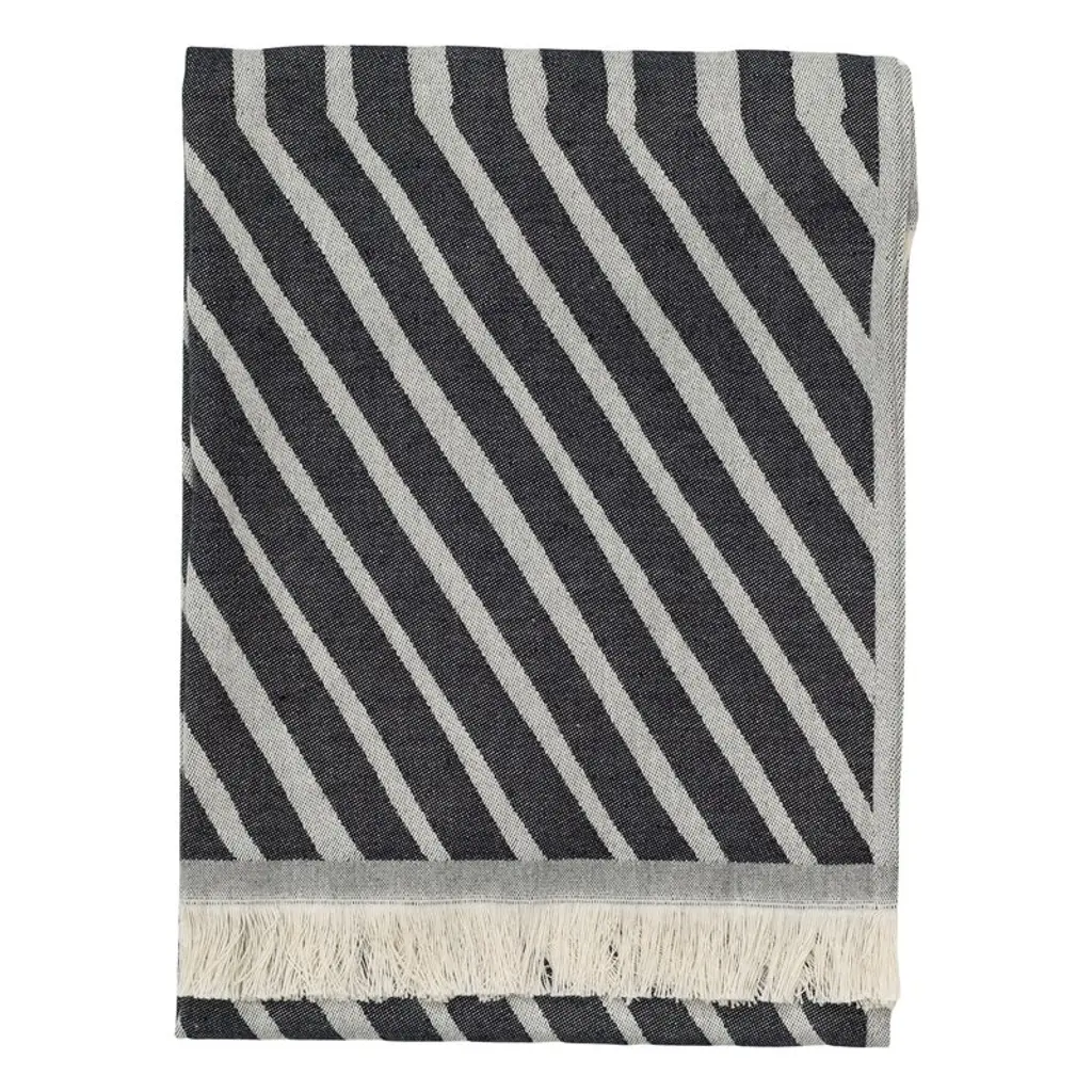 Marimekko's Kalasääski hand towel is adorned with a timelessly elegant print featuring hand-painted vertical and diagonal stripes, perfected with harmonious hues. Designed by Maija Isola in 1962, the Kalasääski ("osprey") pattern infuses its surroundings with a fresh and airy yet soothing feel. The pleasantly lightweight hamam towel, woven with a jacquard knit, feels soft against the skin, dries quickly, and can be easily packed into a small space. The Kalasääski hand towel is made from organic cotton and features playful fringes on both ends.