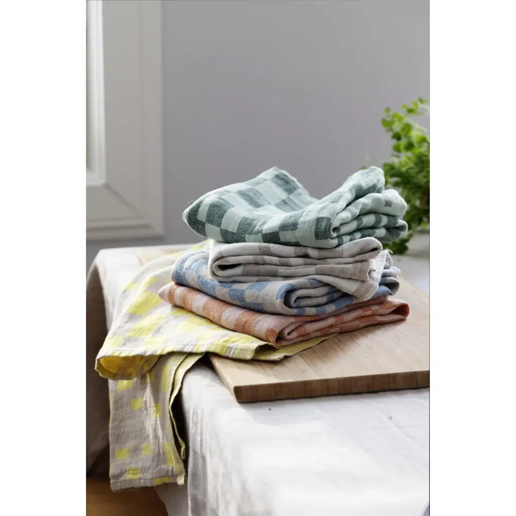 The Koodi towel by Lapuan Kankurit is decorated with a delightfully asymmetrical checkered pattern designed by Elina Helenius. It is based on one of Helenius' earlier designs, Huvila, and the extra-long woven fabric she created for the 50th-anniversary exhibition of Lapuan Kankurit in 2023: Koodi presents a detail from the compositions of 4.5-meter-long fabric. The Koodi towel is made in Finland of washed European linen, a carefree material with a naturally laid-back appearance. It is not necessary to iron the towel – small wrinkles and creases give it a relaxed, natural look. The towel can be used as a tea towel or a hand towel as preferred.
