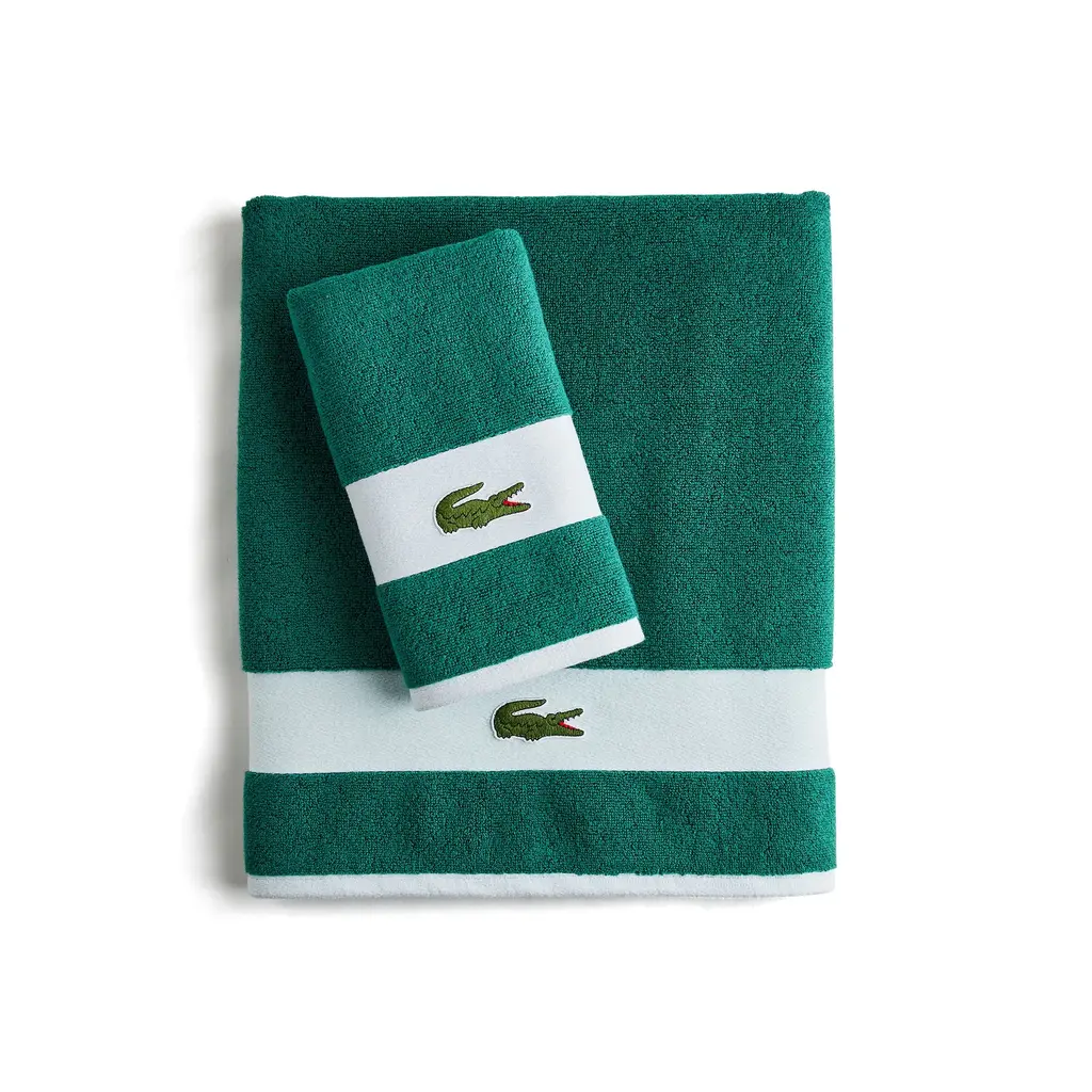 Lacoste Heritage Sport Stripe 100% Cotton Hand Towel - Croc Green