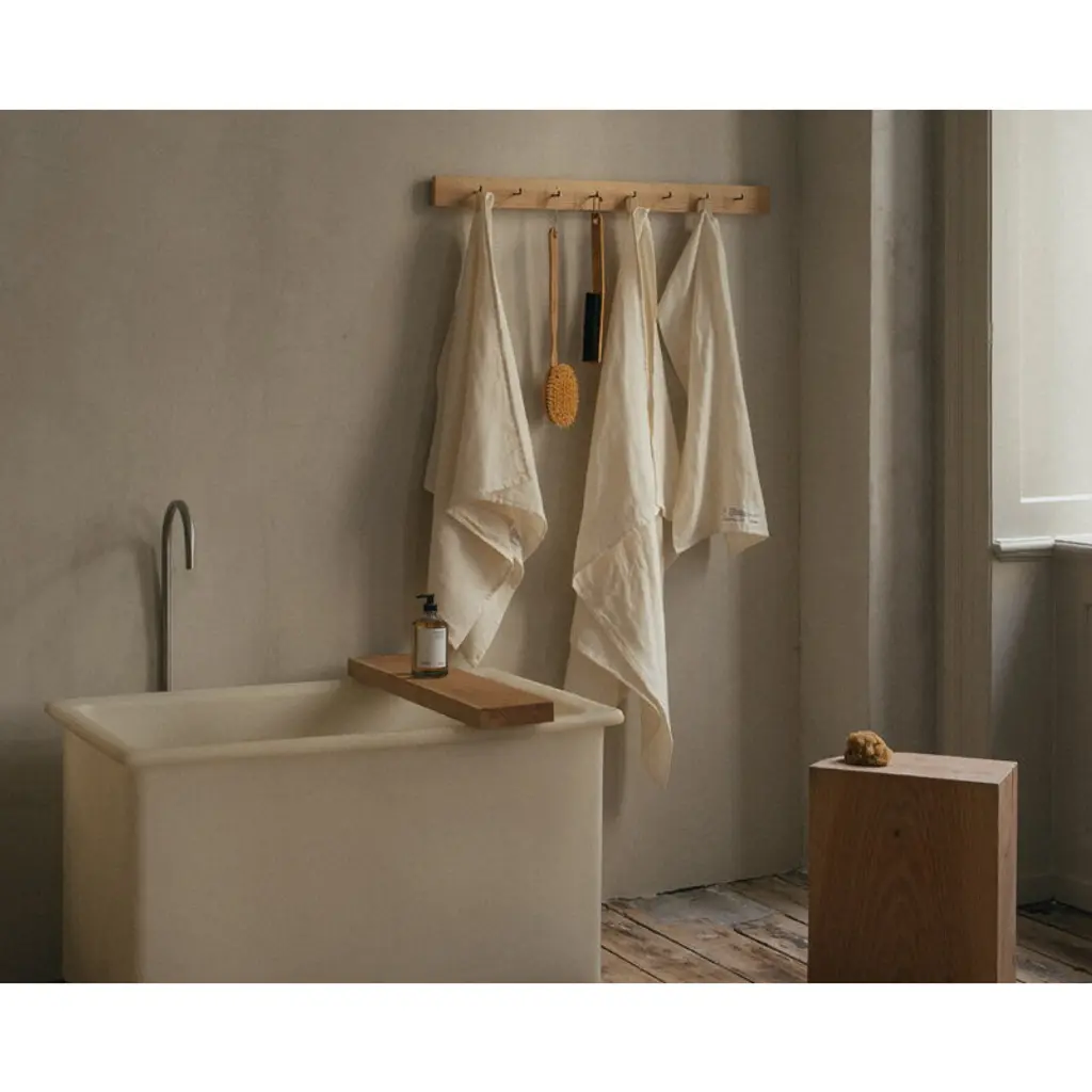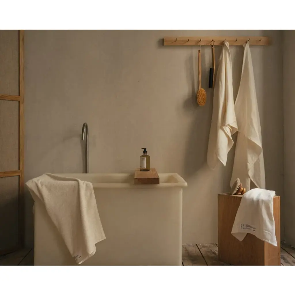 Frama's Light Towel combines soft, Oeko-Tex-certified cotton terry with eco-friendly and breathable linen. Made of natural fibers, the compact, lightweight hand towel is free from harmful chemicals and, what’s more, only gets better, softer and more absorbent the more you use it. The towel is quick-drying and naturally hypoallergenic, and it measures 31.5 x 19.69 x 0 in (80 x 50 x cm. cm). Light Towels have two loops that allow you to hang the towel in either direction. The towels come in a recyclable, reusable bag that can be used as a laundry bag when traveling or for carrying a wet towel after a day at the beach. The towels are made in Turkey.