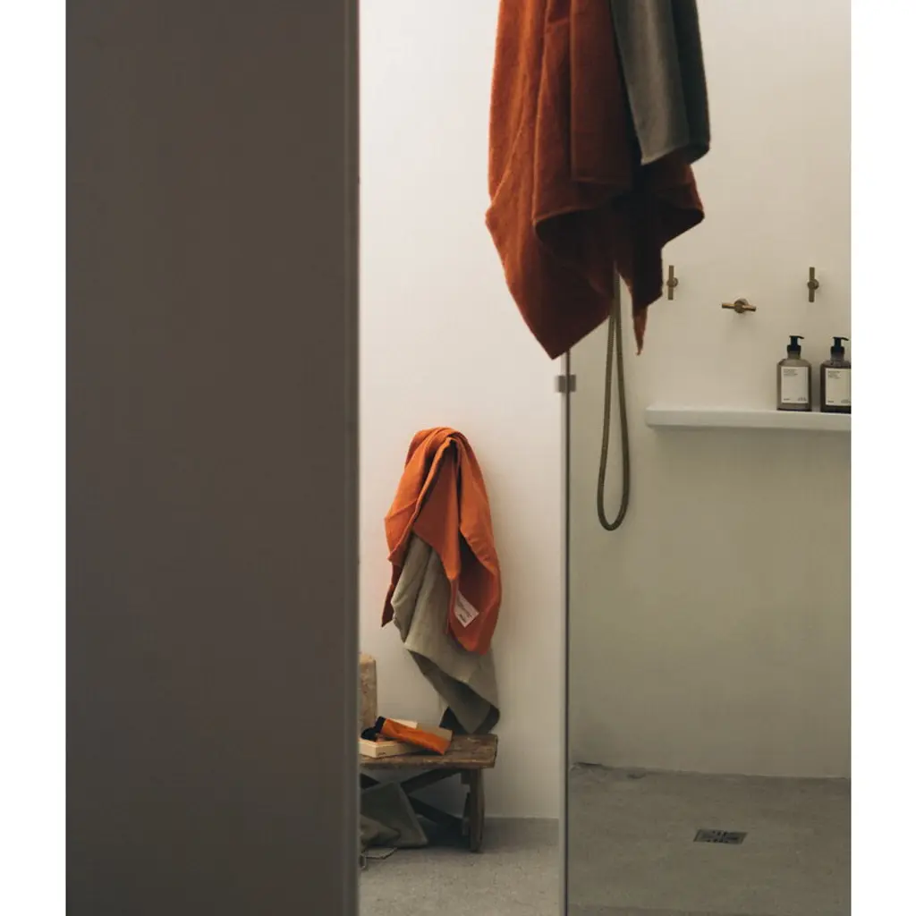 Frama’s Light Towel combines soft, Oeko-Tex-certified cotton terry with eco-friendly and breathable linen. Made of natural fibers, the compact, lightweight hand towel is free from harmful chemicals and, what’s more, only gets better, softer and more absorbent the more you use it. The towel is quick-drying and naturally hypoallergenic, and it measures 31.5 x 19.69 x 0 in (80 x 50 x cm. cm). Light Towels have two loops that allow you to hang the towel in either direction. The towels come in a recyclable, reusable bag that can be used as a laundry bag when traveling or for carrying a wet towel after a day at the beach. The towels are made in Turkey.