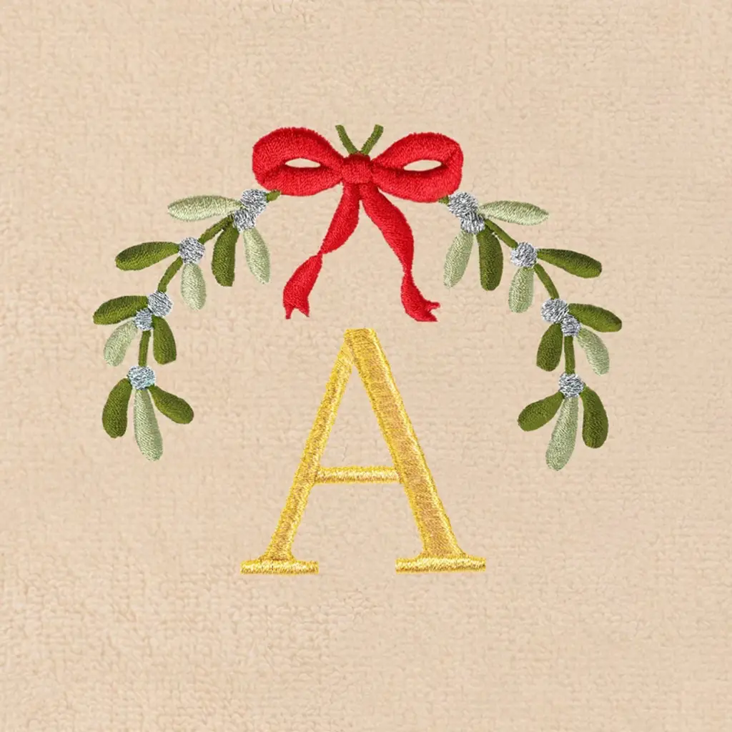 Bring a joyful Christmas spirit to your decorations with elegant embroidered hand towels for your guest bath. These Christmas MISTLETOE MONOGRAM towels feature sparkling branches held by a bow and a monogram of your choice. This special & luxurious Christmas towel is manufactured with more cotton per square inch for maximum softness and absorbency. The Christmas MISTLETOE MONOGRAM towels will add a merry mood to your festivities and make a great gift!