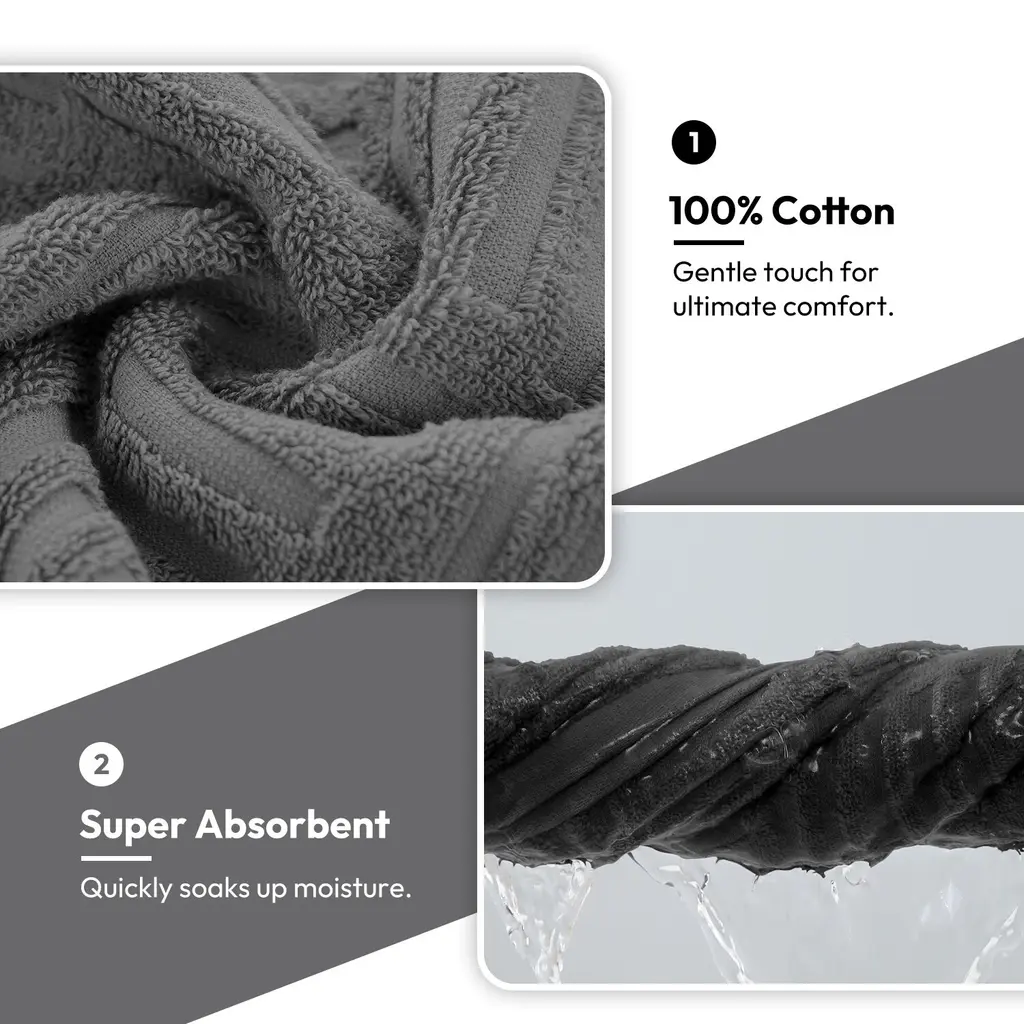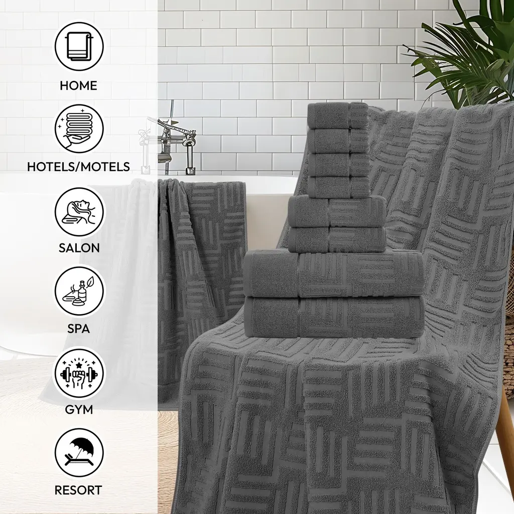 Luxury Jacquard 8 Piece Bath Towels Set - Dark Grey