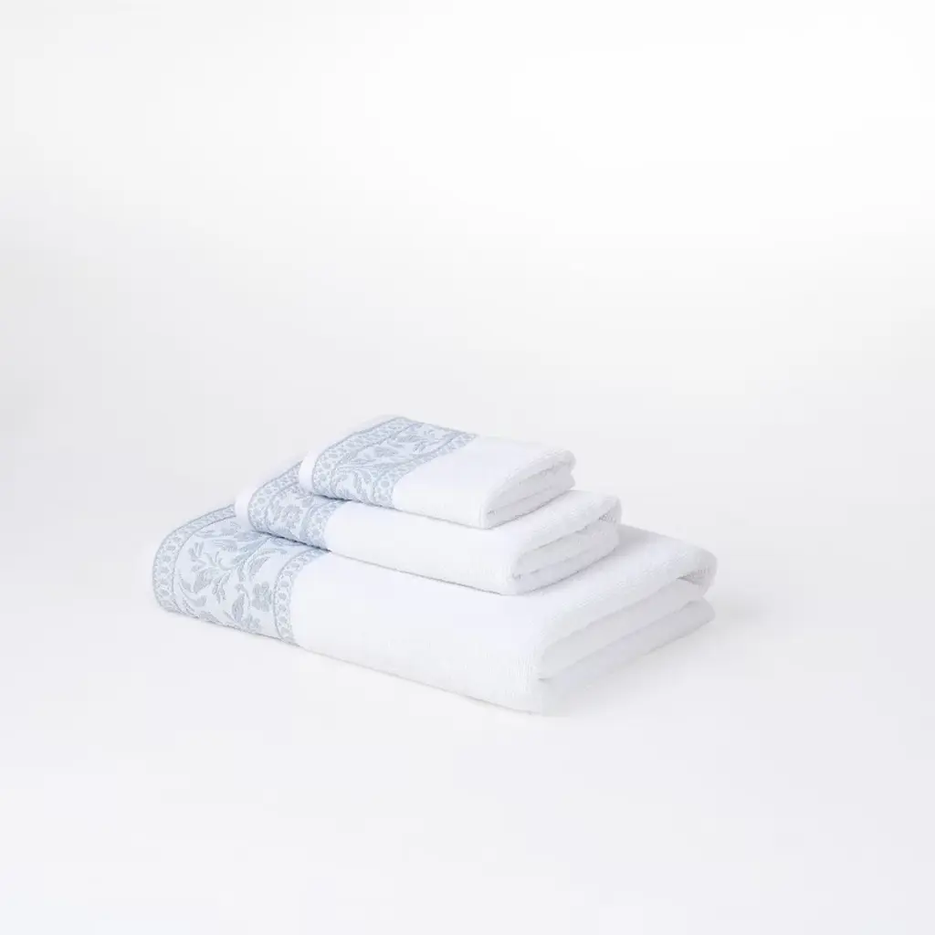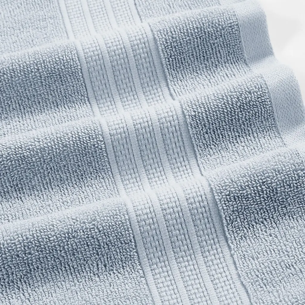 Indulge in everyday luxury with the Modern Threads Allie Jacquard Border 6-Piece Towel Set. Crafted from 100% combed cotton, these towels are soft, highly absorbent, and gentle on the skin—perfect for daily use. Each set includes both solid color towels and beautifully woven yarn-dyed jacquard designs, offering a balance of classic simplicity and elegant texture. The embroidered jacquard border on the bath towels and hand towels adds a refined touch, making them as stylish as they are functional. Durable, machine washable, and designed for all-season use, this towel set is the perfect upgrade for any bathroom. Certified to the OEKO-TEX® Standard 100, this set is made in an independent facility tested for harmful substances to ensure safety for you and your home. Care Instructions: Wash before first use. Machine wash with cold water in delicate cycle with similar colors. Use mild detergent or neutral soap. Use only chlorine- free bleach if necessary. Do not wring dry, tumble dry on a medium temperature. Iron on low when needed.