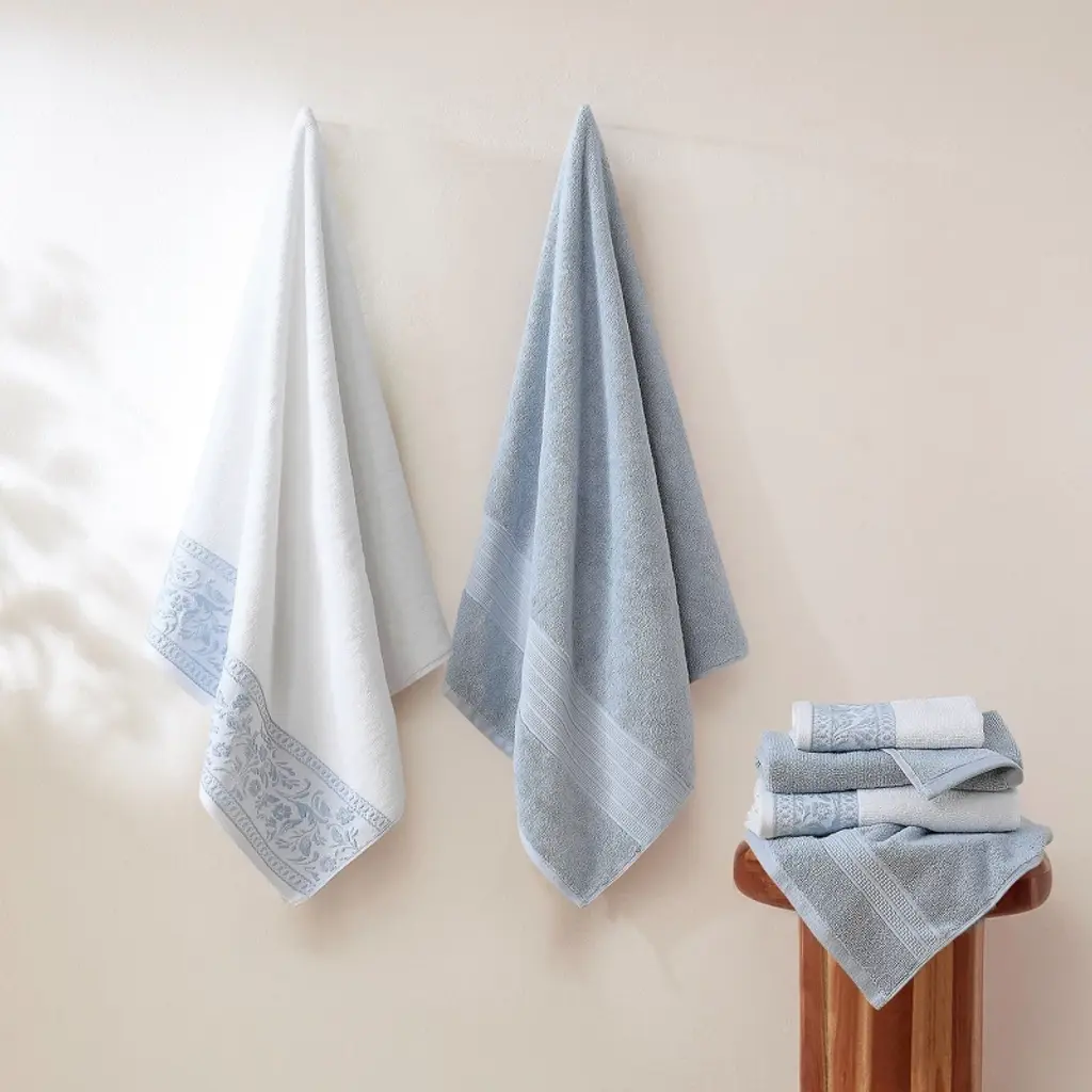 Modern Threads Allie Jacquard Border 6-piece Cotton Towl Set, Sky