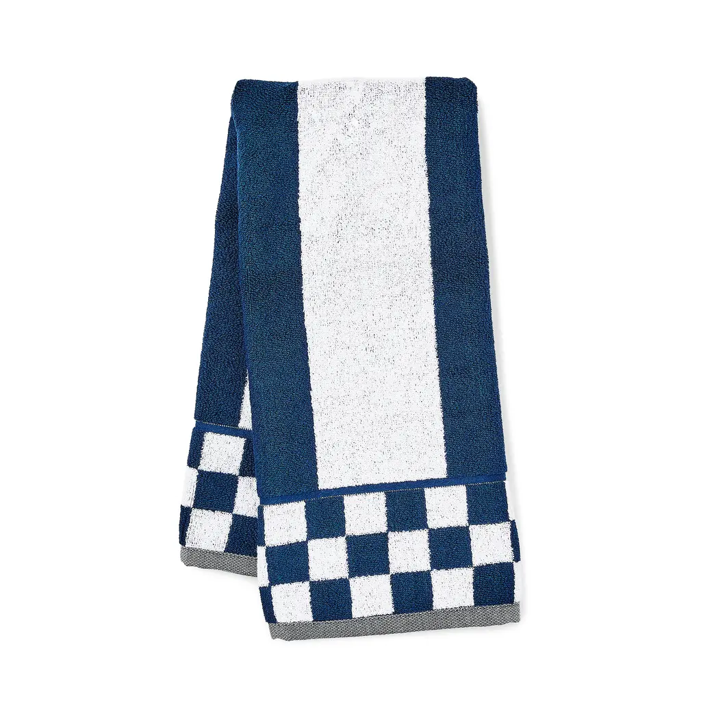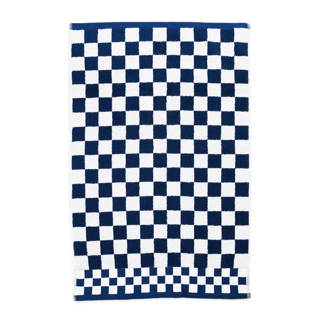 Make a splash with the plush feel and elevated tones of our Navy Check Hand Towel. Made of soft cotton terrycloth, it features refined navy and white checks trimmed with complementary miniature checks. Give your bath an instant makeover and turn scrubbing up into something spectacular.