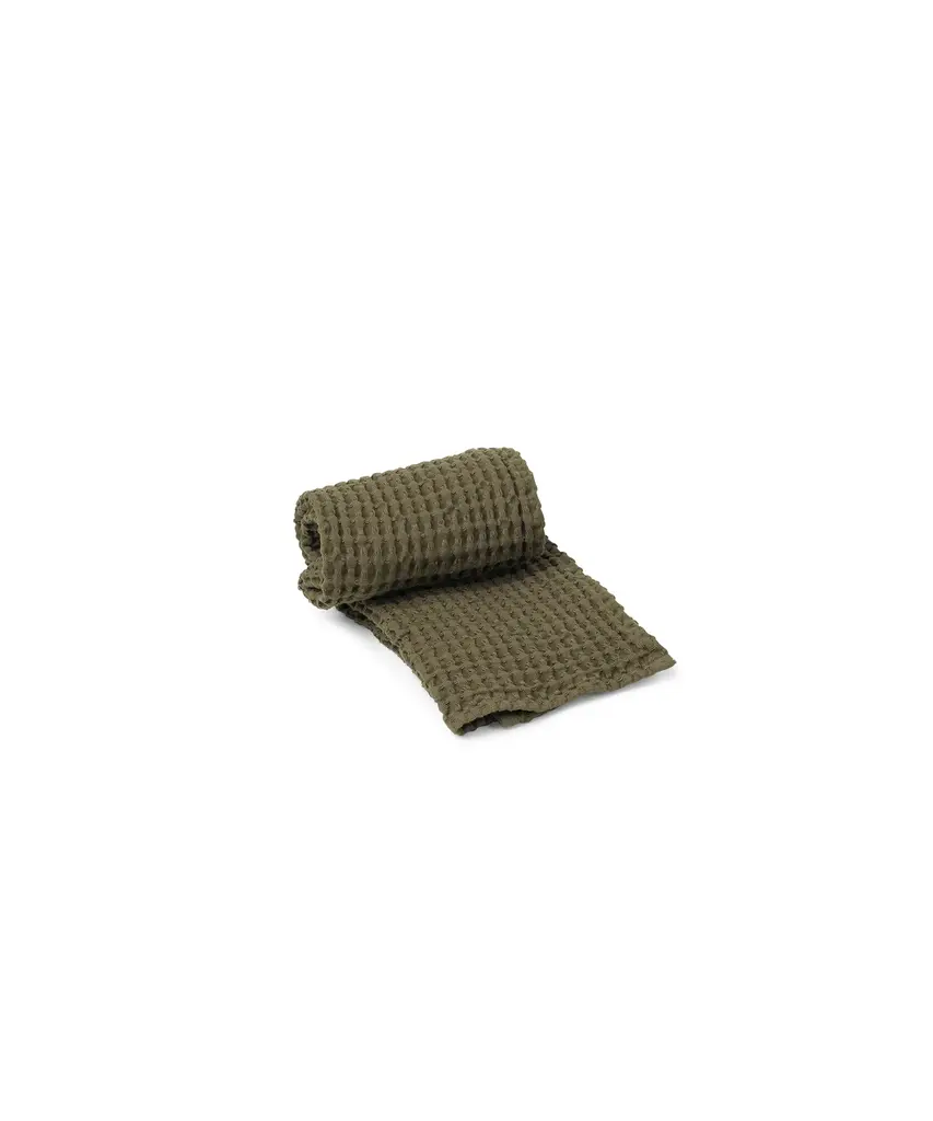 Treat yourself, your family, and your guests to a soft touch from the organic waffle towels. The towels come in different colors in an earthy, subtle color scheme all combined with natural striped webbing straps. The hand towel is made of 100 % organic and GOTS-certified cotton. Designed and produced by the Copenhagen-based studio Ferm Living.