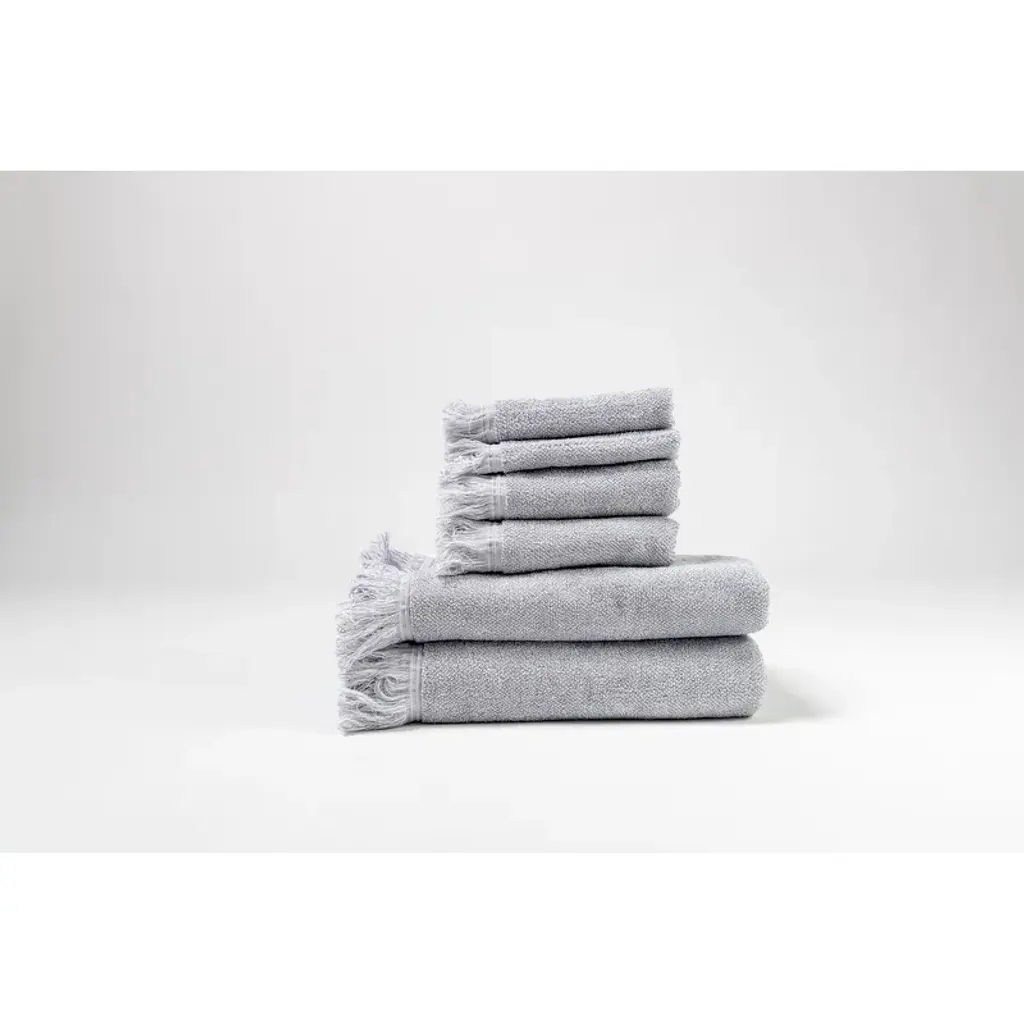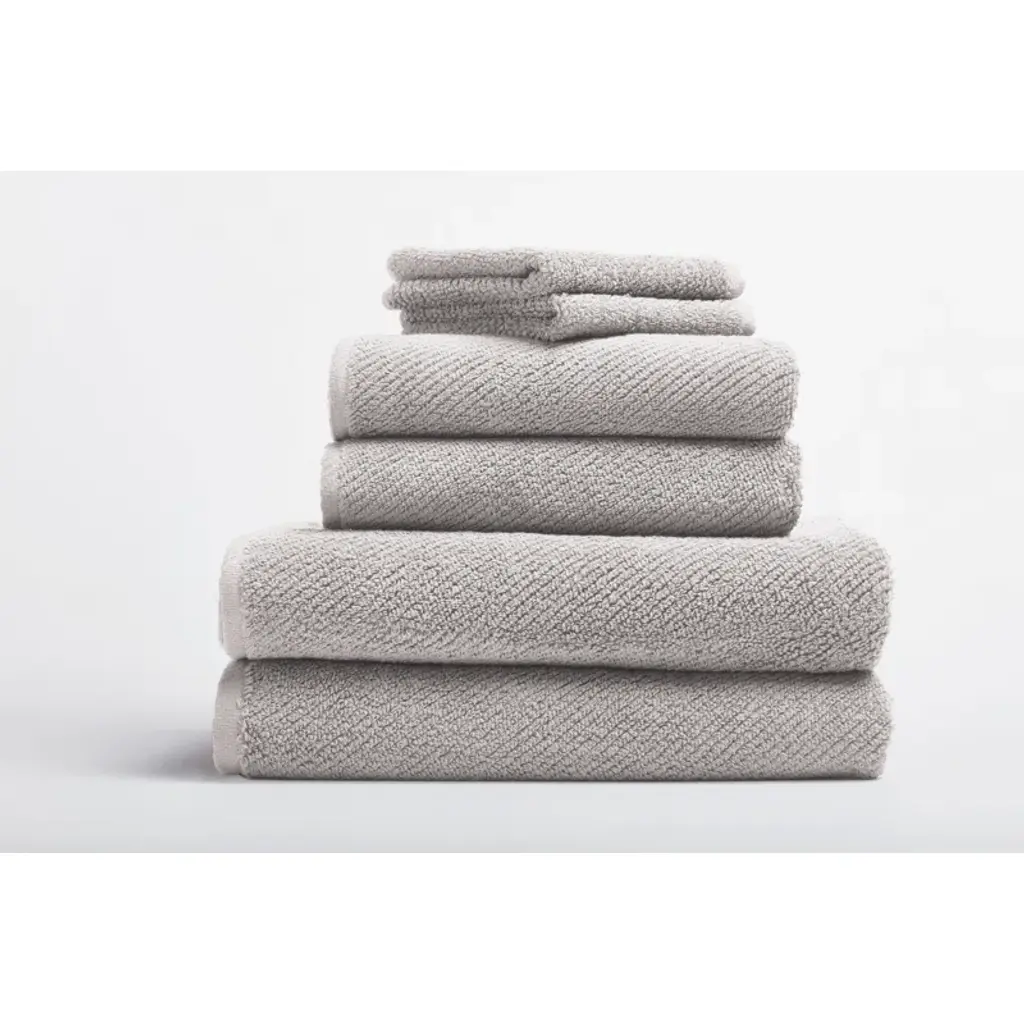 This set combines a full-suitefour washcloths, two hand towels and two bath towelsof luxurious Turkish organic cotton towels in grey with flecked detail for a sumptuously outfitted spa-like bathroom. Extremely plush, dense and incredibly soft, the towels are made of double-ply organic cotton threads to ensure strength and durability. Each one is woven with looped construction to dry quickly and with an intricate herringbone dobby weave along the border for a bit of elegant detail. Washing will only make these exceptional textiles more absorbent and soft.