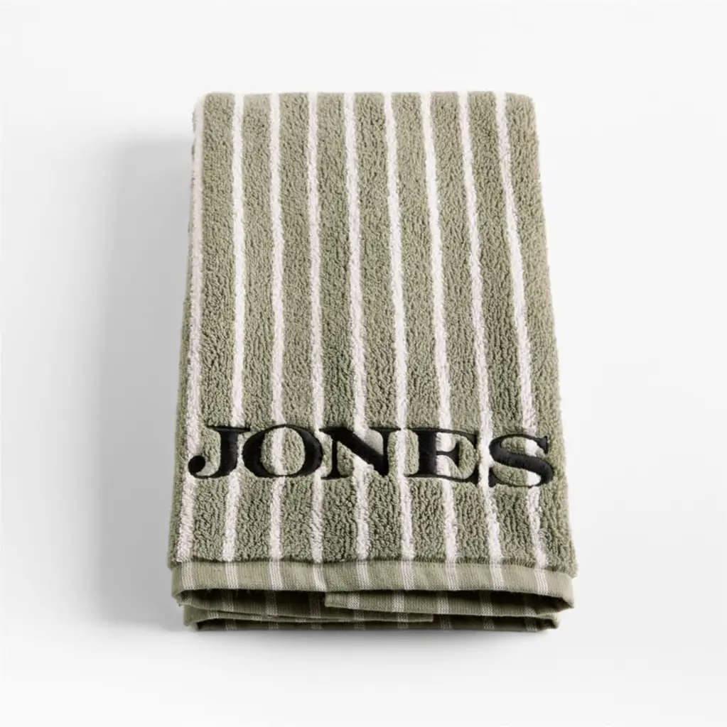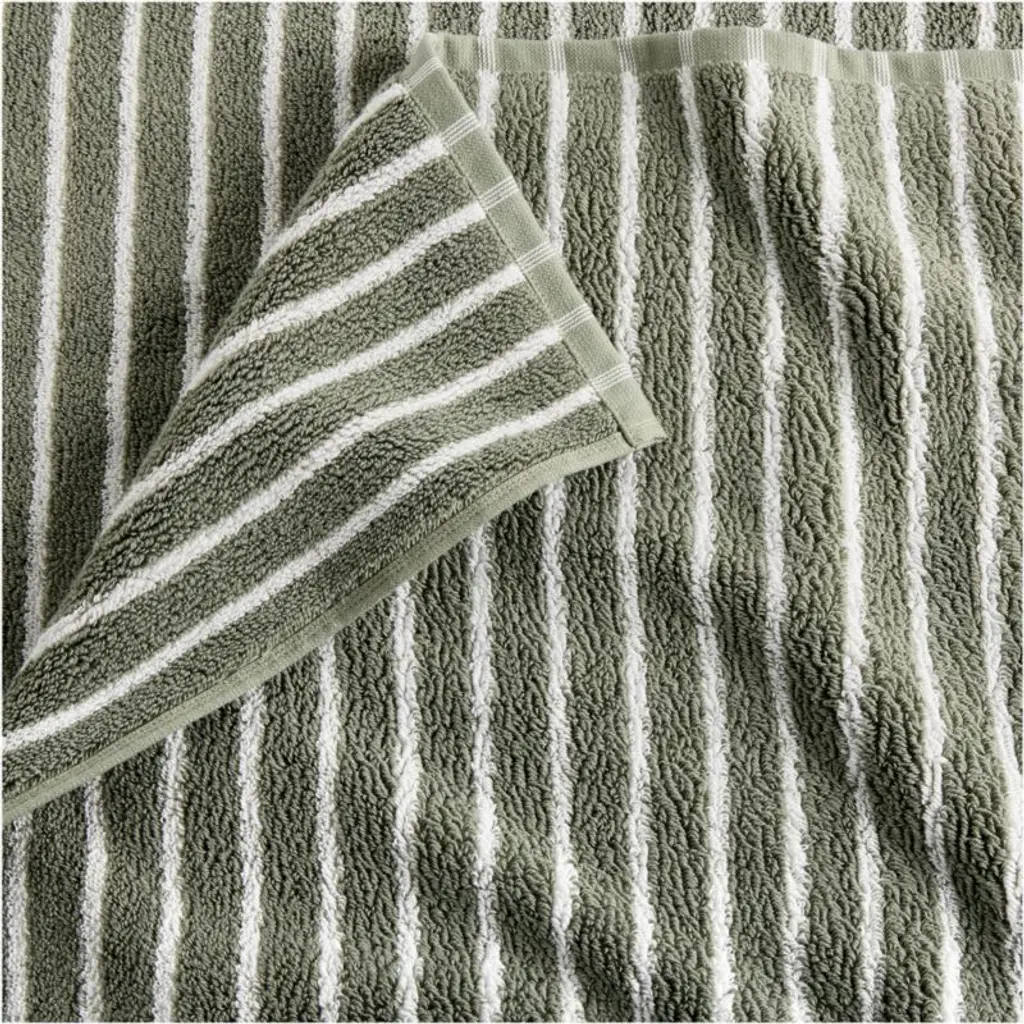 Organic Turkish Cotton Shadow Sage And Pampas Ivory Stripe Hand Towel
