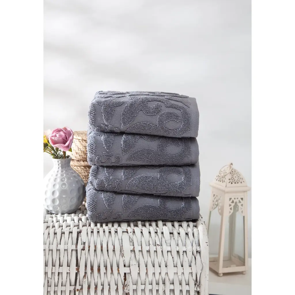 Ozan Premium Home 100% Genuine Turkish Cotton Patchouli Hand Towels (Set Of 4) - Grey