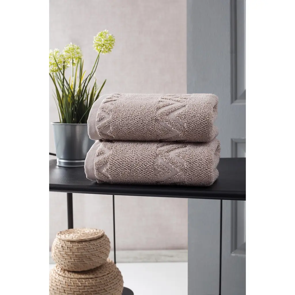 Ozan Premium Home 100% Turkish Cotton Sovrano Collection Luxury Hand Towels (Set Of 2) - Latte