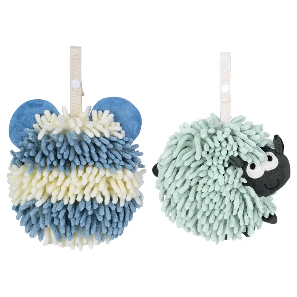 Regalwoven 2 Packs Cute Cartoon Dog Shape Soft Absorbent Chenille Hand Towel With Hanging Loop 8" X 10" Green