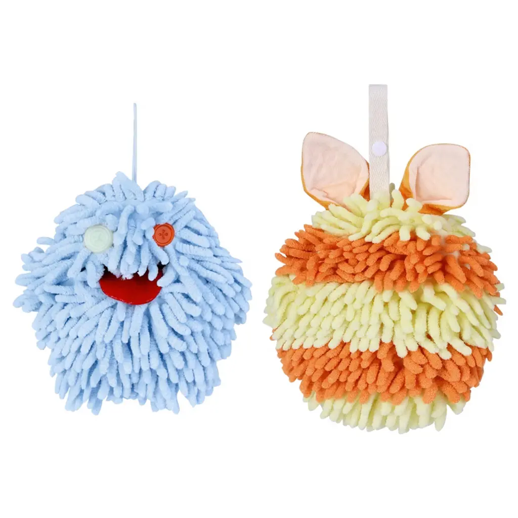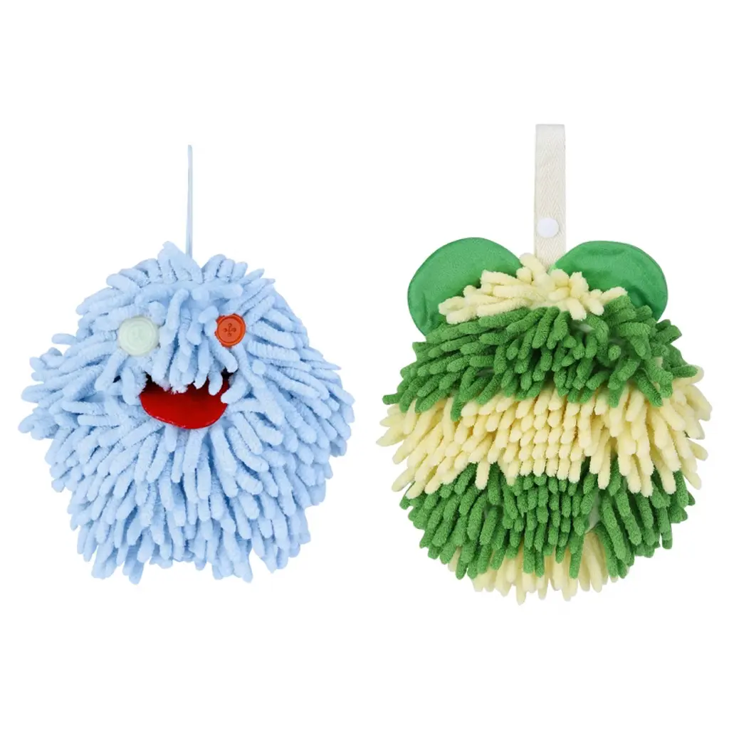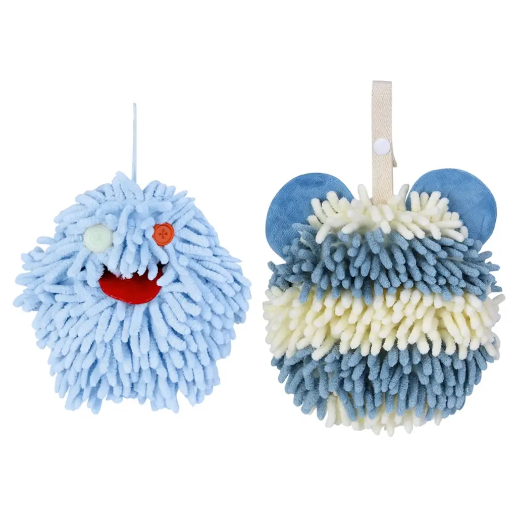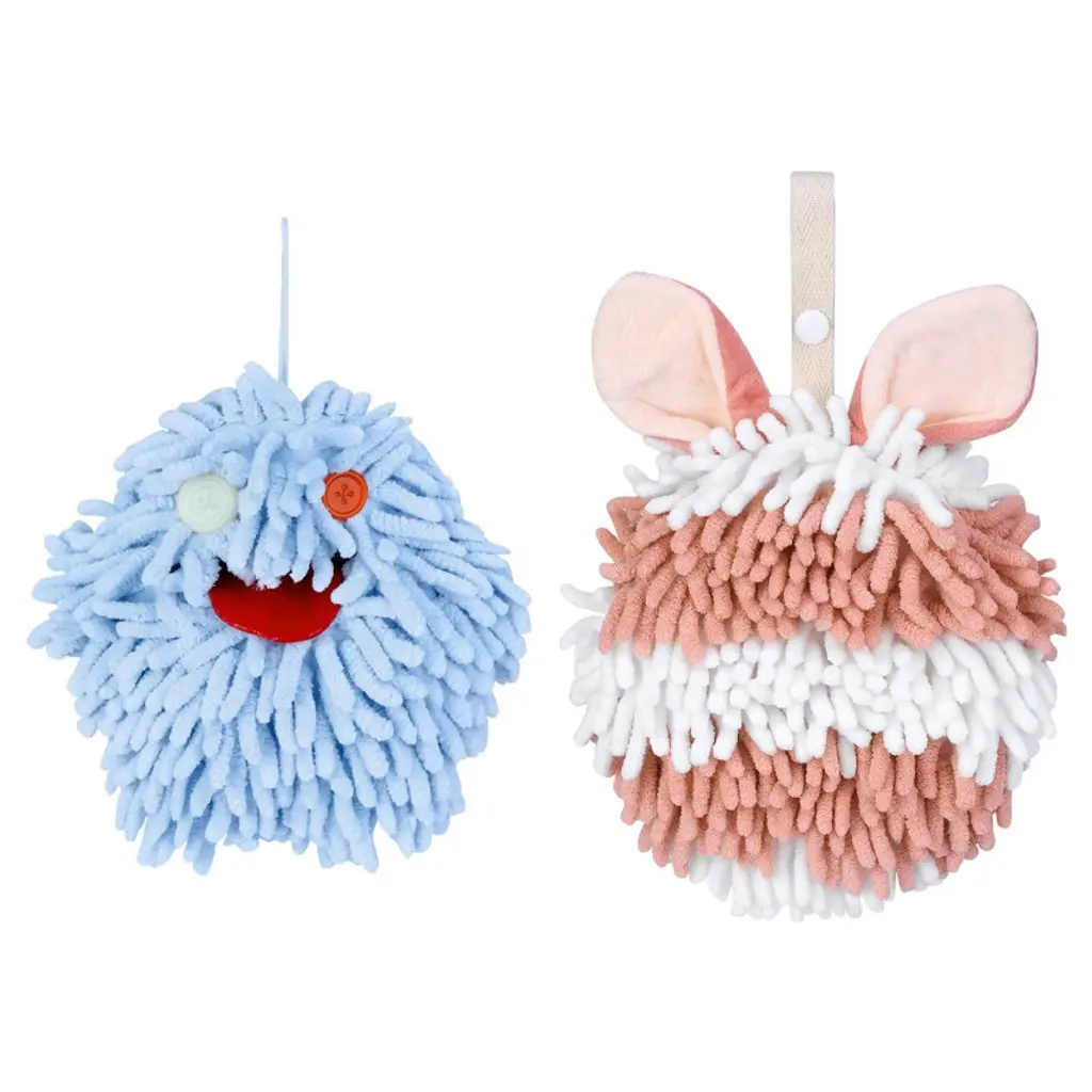 Regalwoven 2 Packs Fluffy Chenille Rabbit Shape Cute Soft Absorbent Hanging Ball Hand Towels 7" X 7" Blue/green