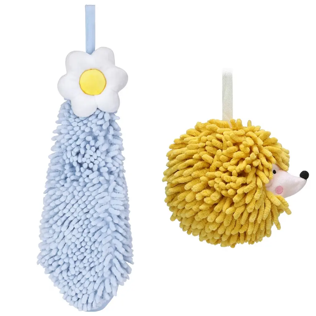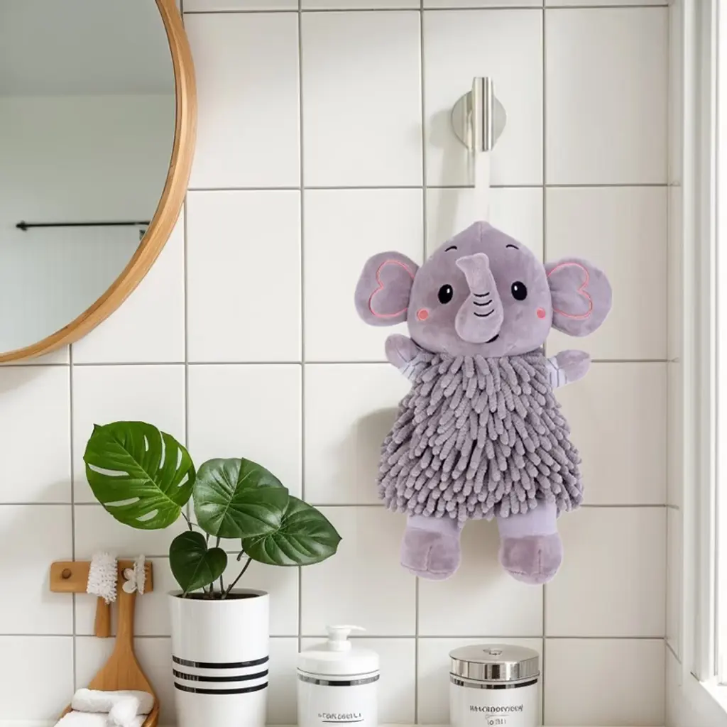 Regalwoven 2 Packs Soft Absorbent Chenille Cute Cartoon Elephant Hand Towel With Hanging Loop 7" X 11" Grey/brown