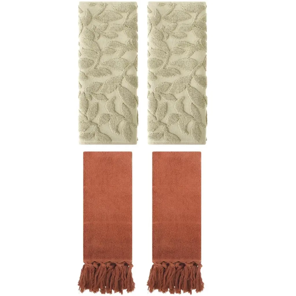 Regalwoven 2 Packs Soft Absorbent Cotton Hand Towels With Tassels 14" X 30" Brown/green
