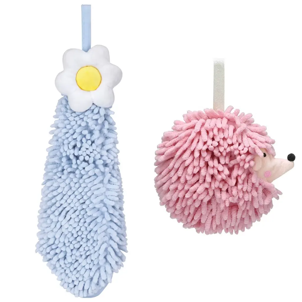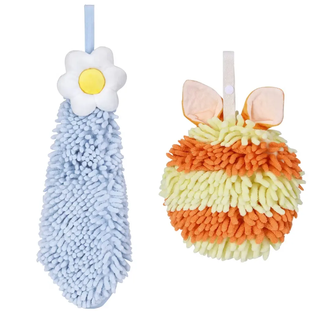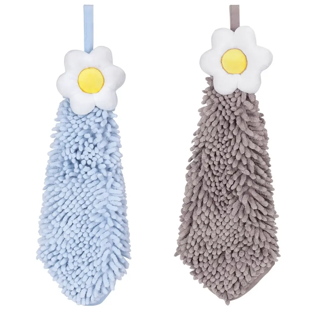 Regalwoven 2 Packs Soft Absorbent Flower And Rabbit Shape Decorative Chenille Hand Towel For Bathroom 6" X 15"/7" X 7" Blue-1/pink