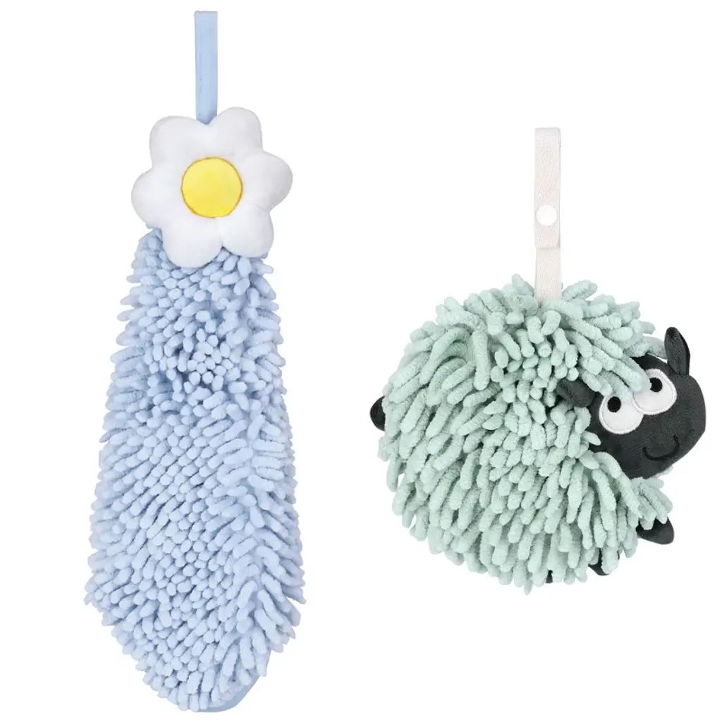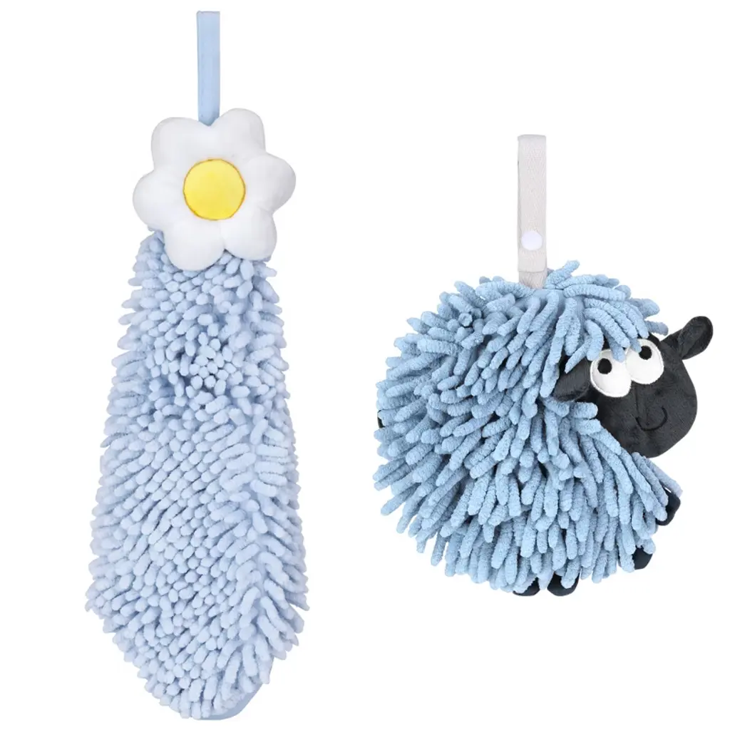 Regalwoven 2 Packs Soft Absorbent Flower Pattern Chenille Hand Towel With Loop 6" X 15"/7" X 7" Blue-1/green