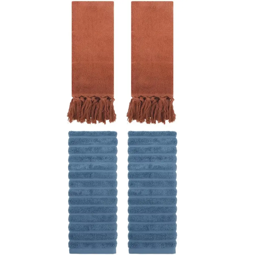 Regalwoven 2 Packs Solid Absorbent Soft Cotton Hand Towels 14" X 30" Brown/blue