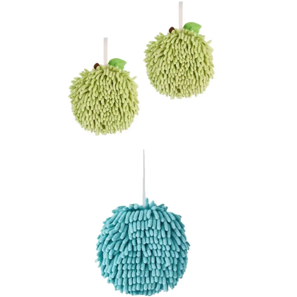 Regalwoven 3 Pack Chenille Soft Absorbent Fuzzy Ball Hand Towels For Bathroom 6" X 6" White/green