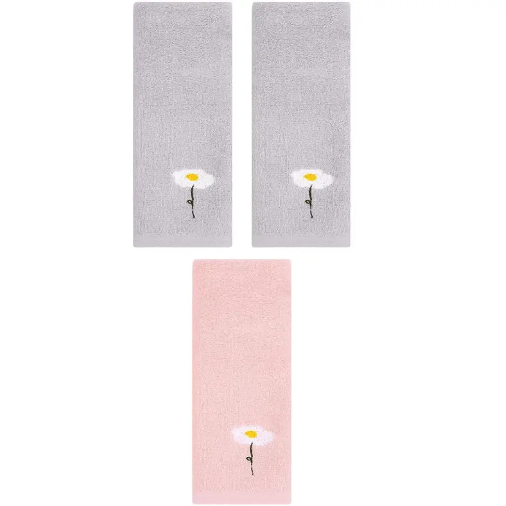 Regalwoven 3 Pack Floral Pattern Cotton Soft Absorbent Decorative Hand Towels 13" X 30" Light Brown
