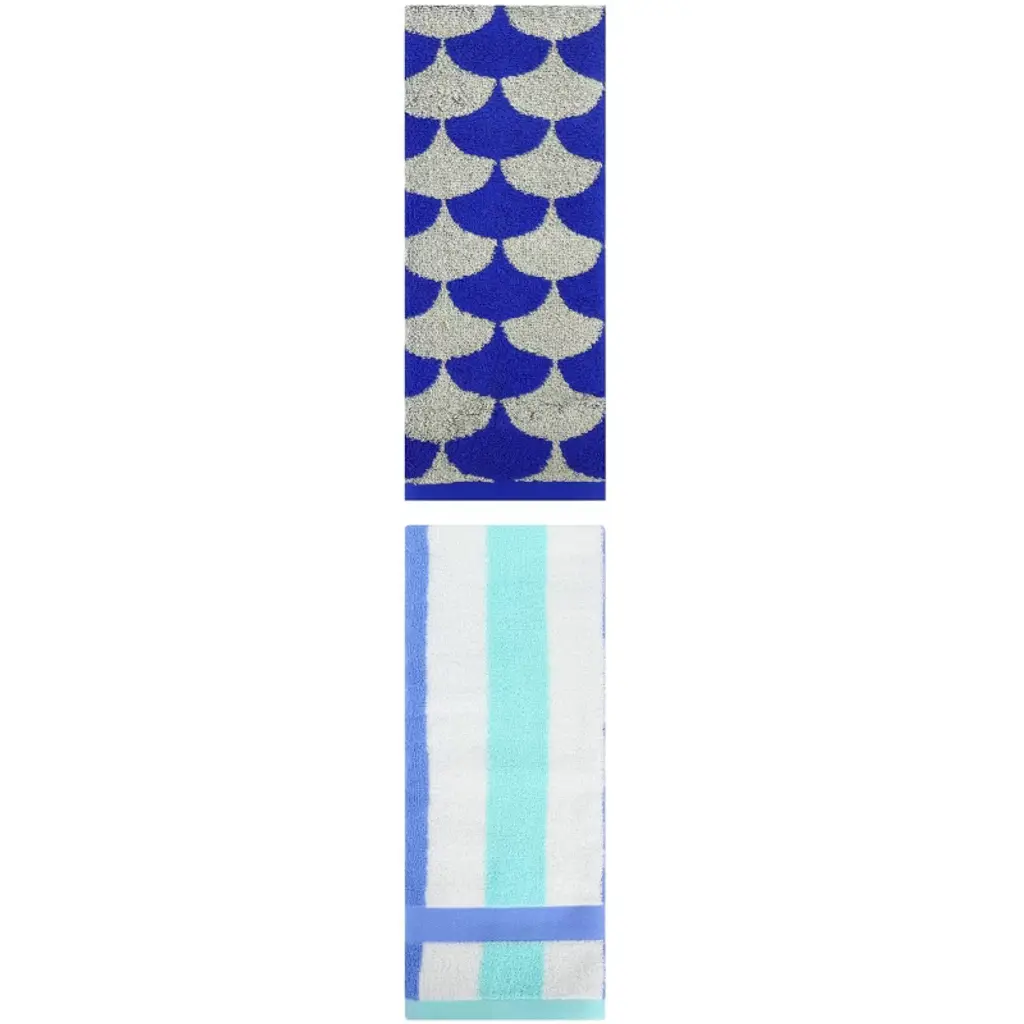 Regalwoven 3 Pack Geometric Pattern Soft Absorbent Cotton Hand Towels For Bathroom 13" X 29" Blue/orange