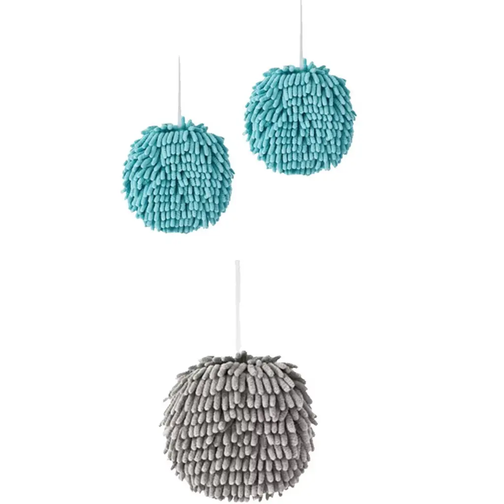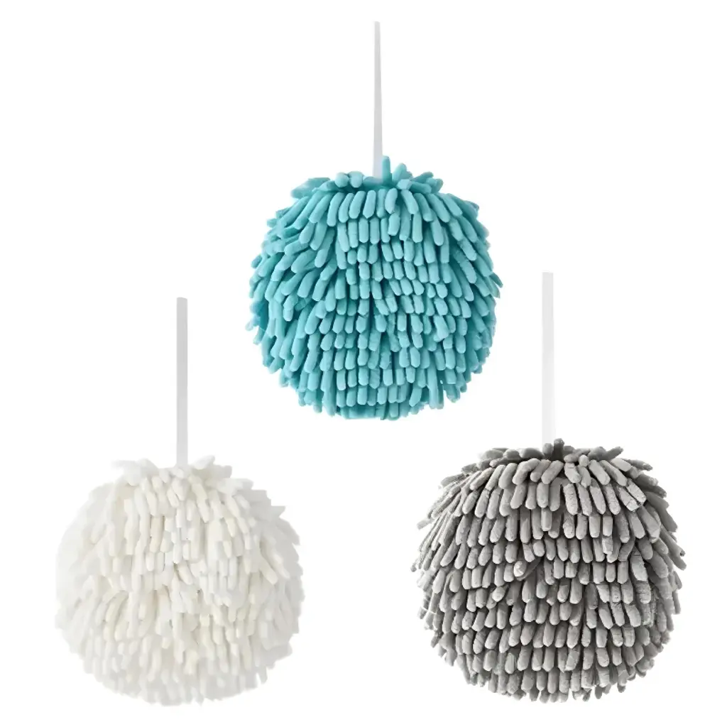 Regalwoven 3 Pack Soft Absorbent Chenille Fuzzy Hand Towels 6" X 6" Blue