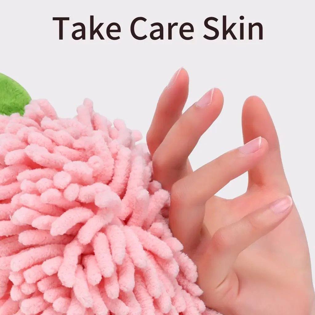 Regalwoven 3 Pack Soft Absorbent Fluffy Chenille Hand Towels For Bathroom 6" X 6" Pink/green