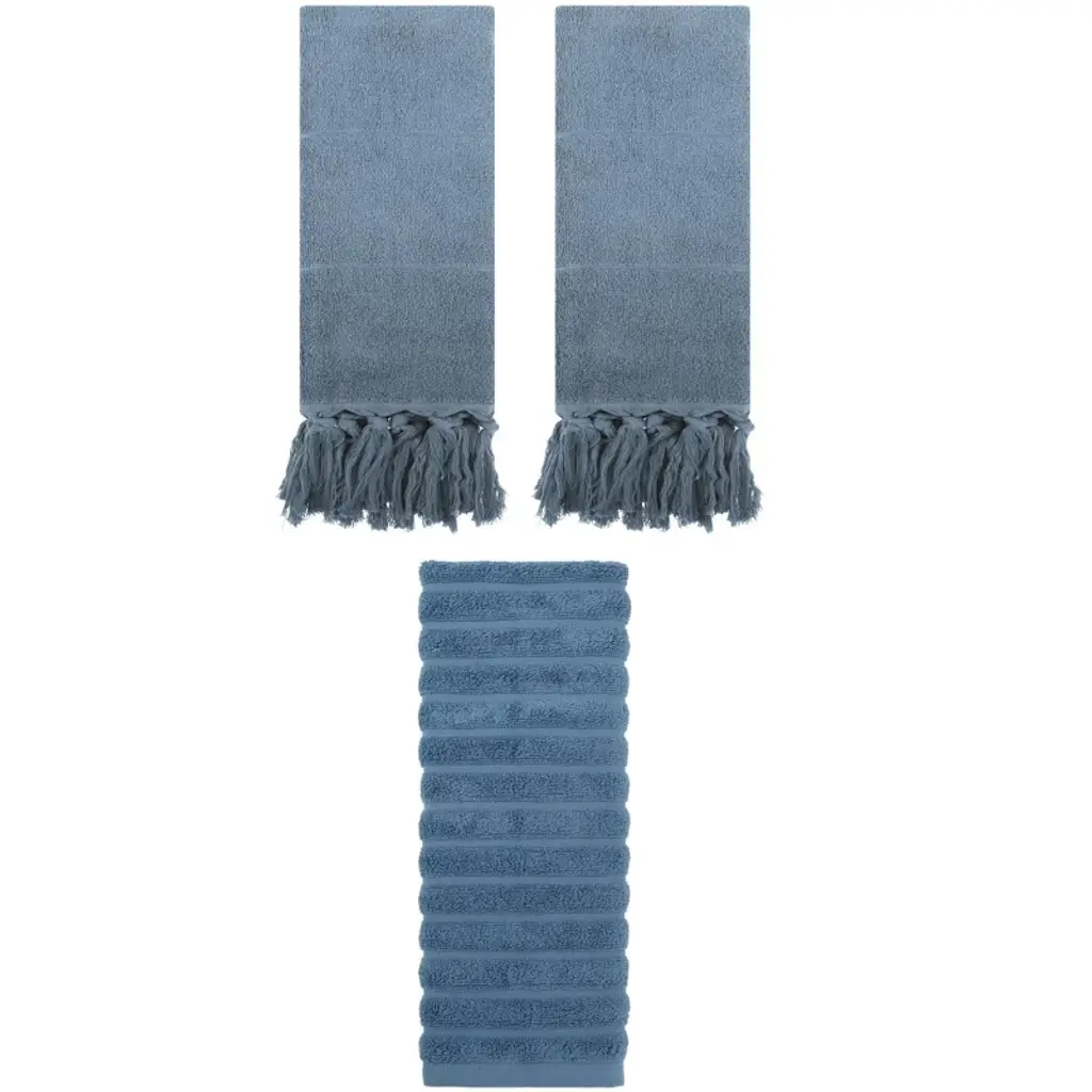 Regalwoven 3 Packs Solid Absorbent Soft Cotton Hand Towels 14" X 30" Blue/white