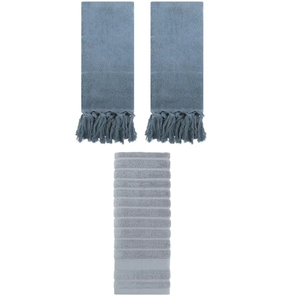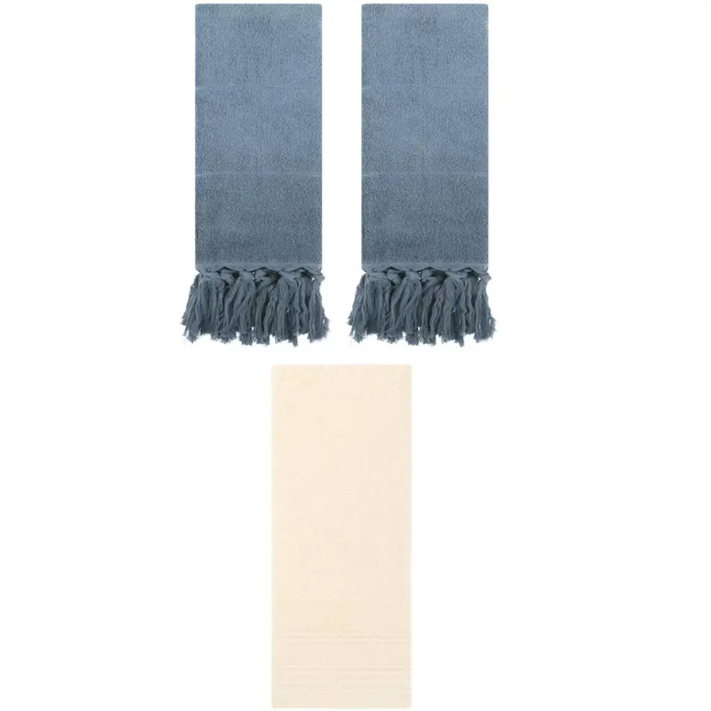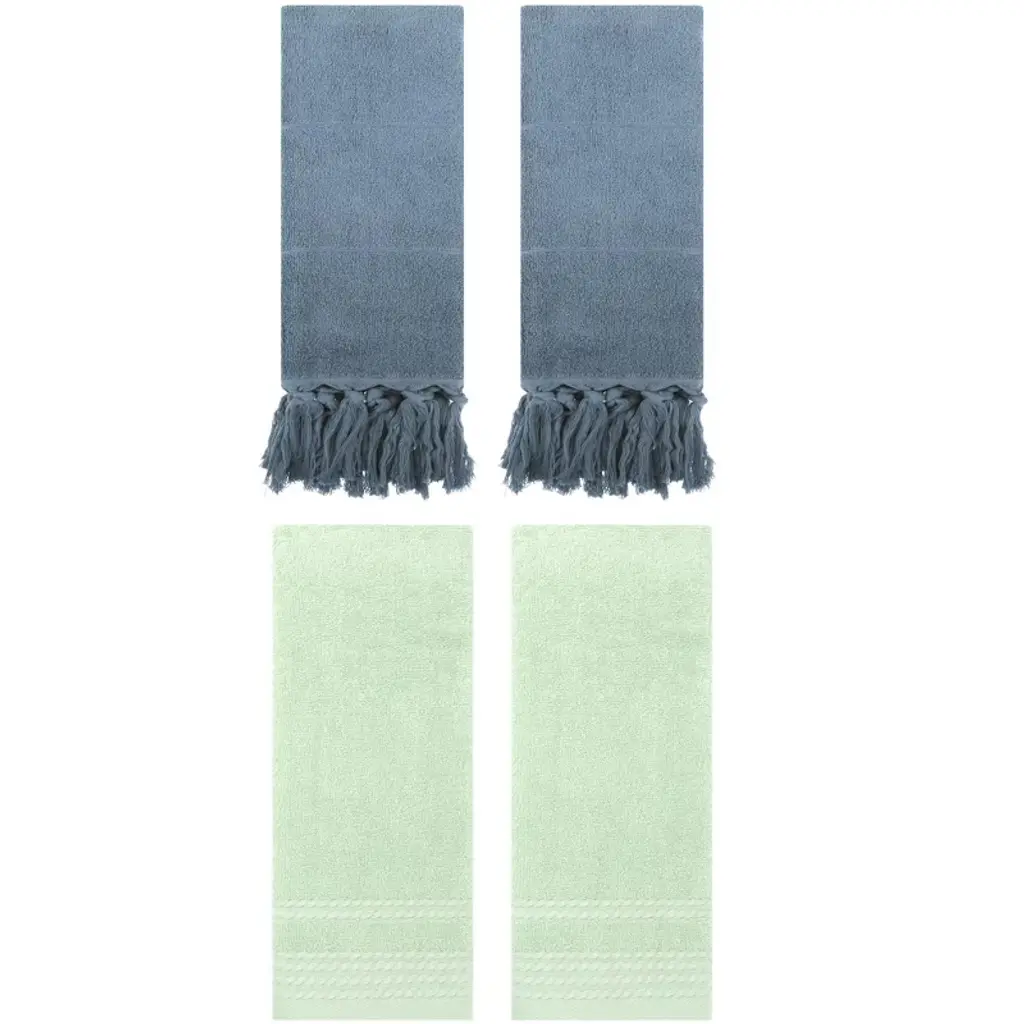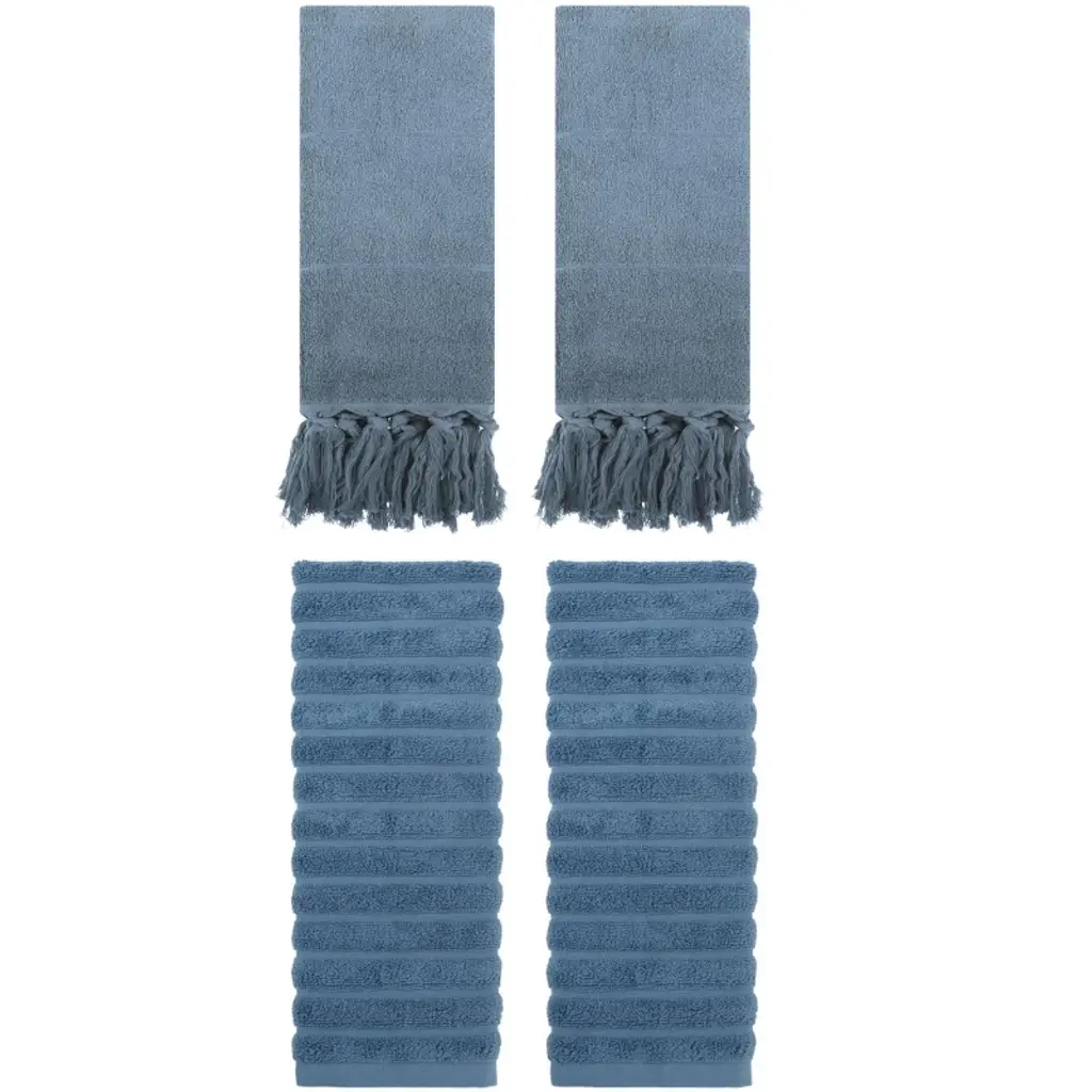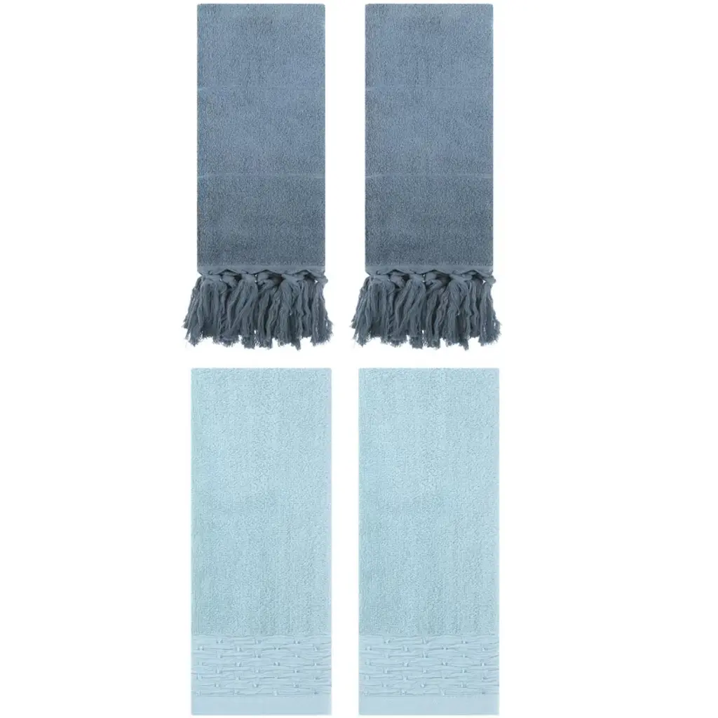 Regalwoven 4 Packs Solid Absorbent Soft Cotton Hand Towels 14" X 30" Blue/white