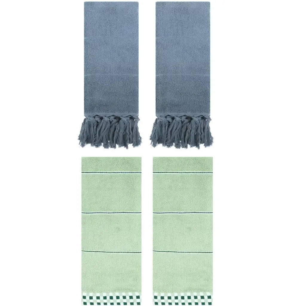 Regalwoven 4 Pcs Bathroom Hand Towel 14" X 30" Blue/green