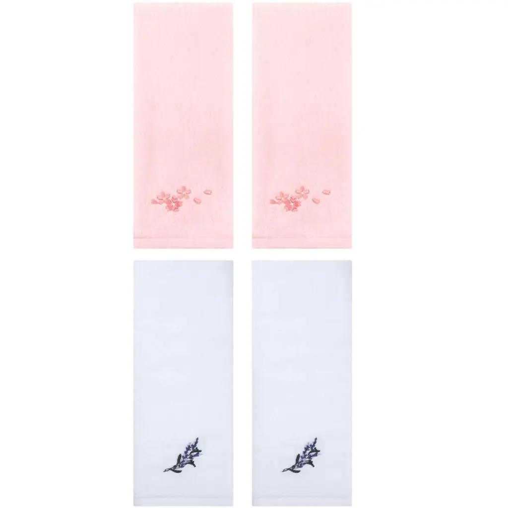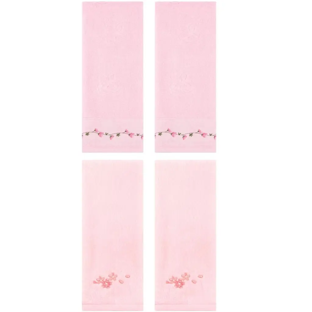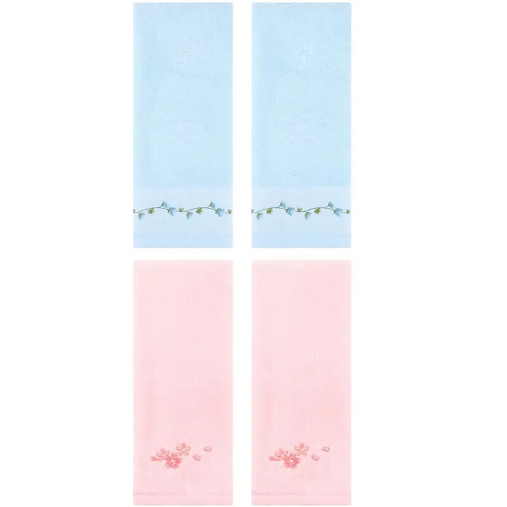Regalwoven 4 Pcs Bathroom Kitchen Soft Absorbent Cotton Floral Embroidered Hand Towel 13" X 29" Pink/blue