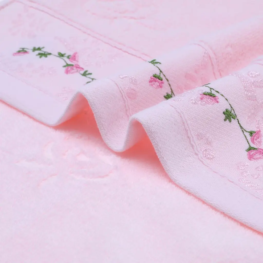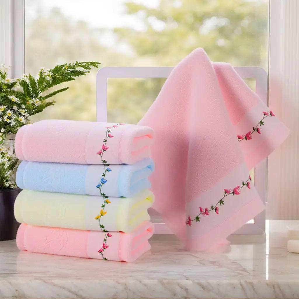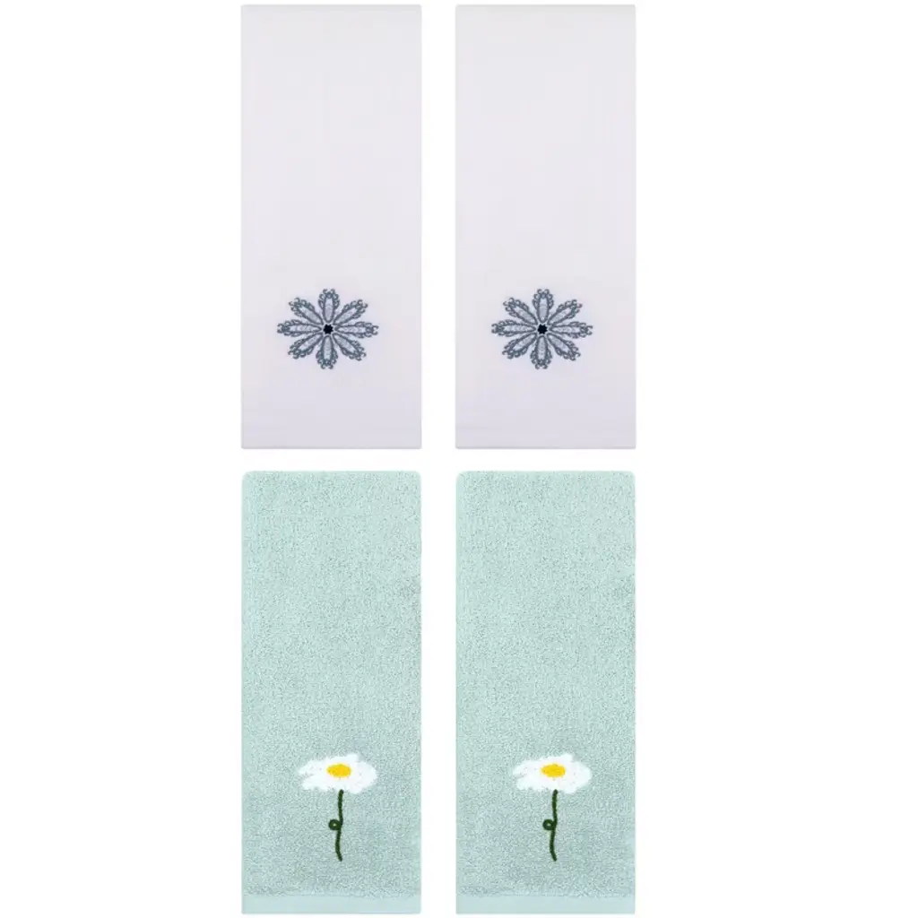 Regalwoven 4 Pcs Bathroom Kitchen Soft Absorbent Cotton Floral Embroidered Hand Towel 13" X 29" Pink/blue