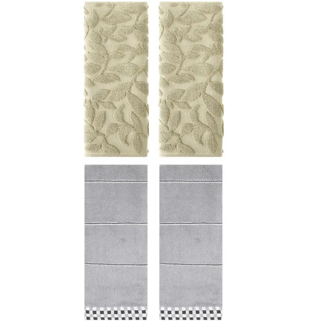 Regalwoven 4 Pcs Bathroom Pure Cotton Absorbent Soft Decorative Hand Towel 14" X 30" Blue/dark Brown
