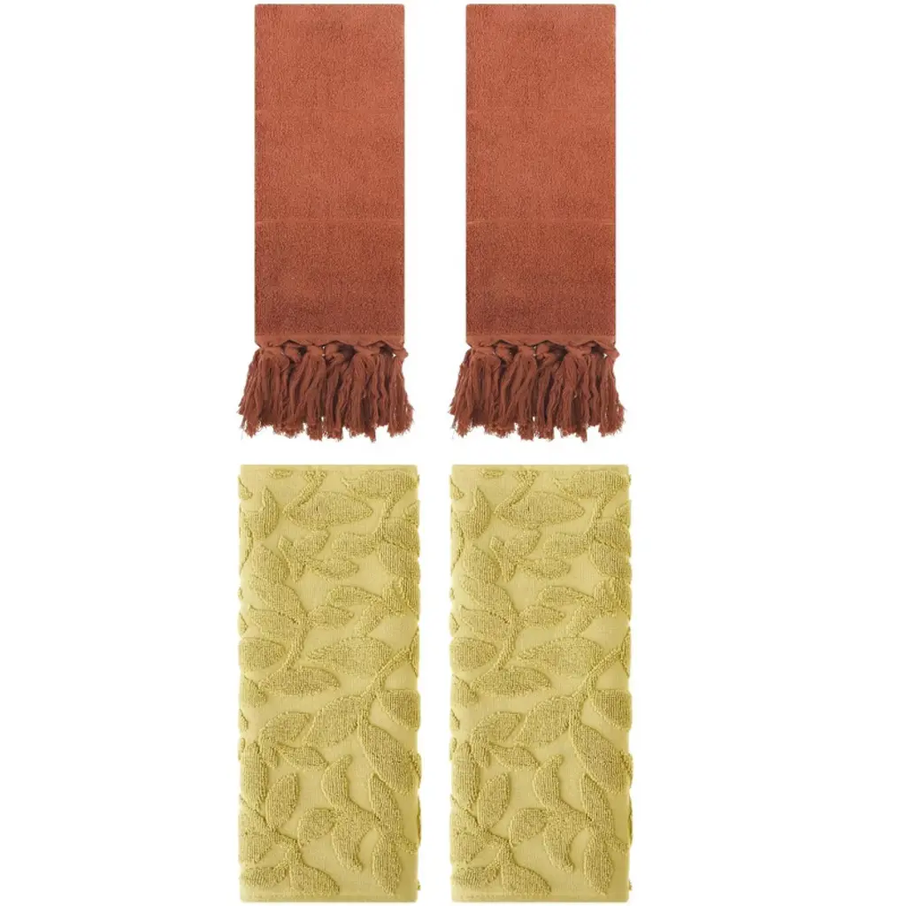 Regalwoven 4 Pcs Cotton Bathroom Hand Towel With Tassel 14" X 30" Brown/yellow