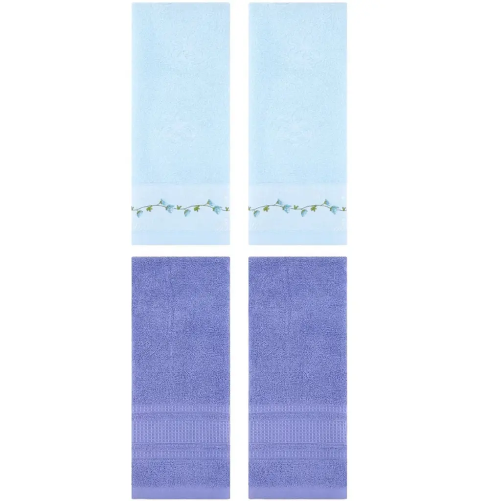 Regalwoven 4 Pcs Cotton Soft Absorbent Bathroom Hand Towels For Home Dcor 13" X 30" Blue/dark Purple
