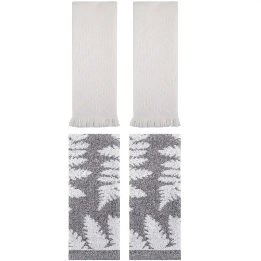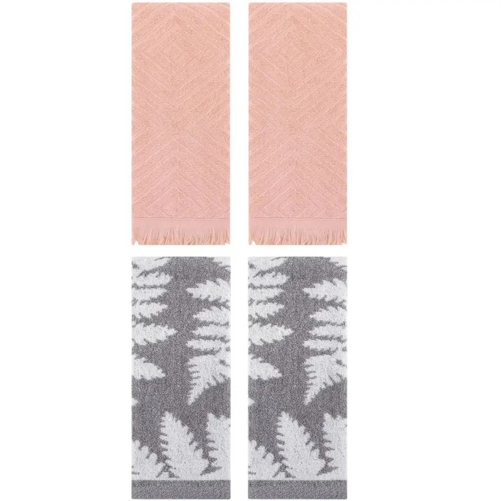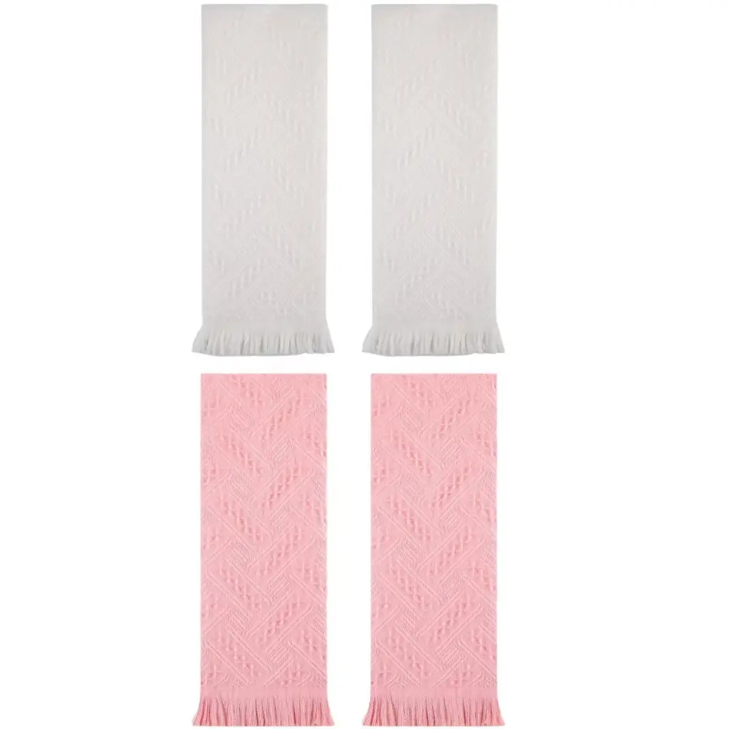 Regalwoven 4 Pcs Cotton Soft Absorbent Jacquard Pattern Boho Decorative Hand Towel 13" X 29" Beige