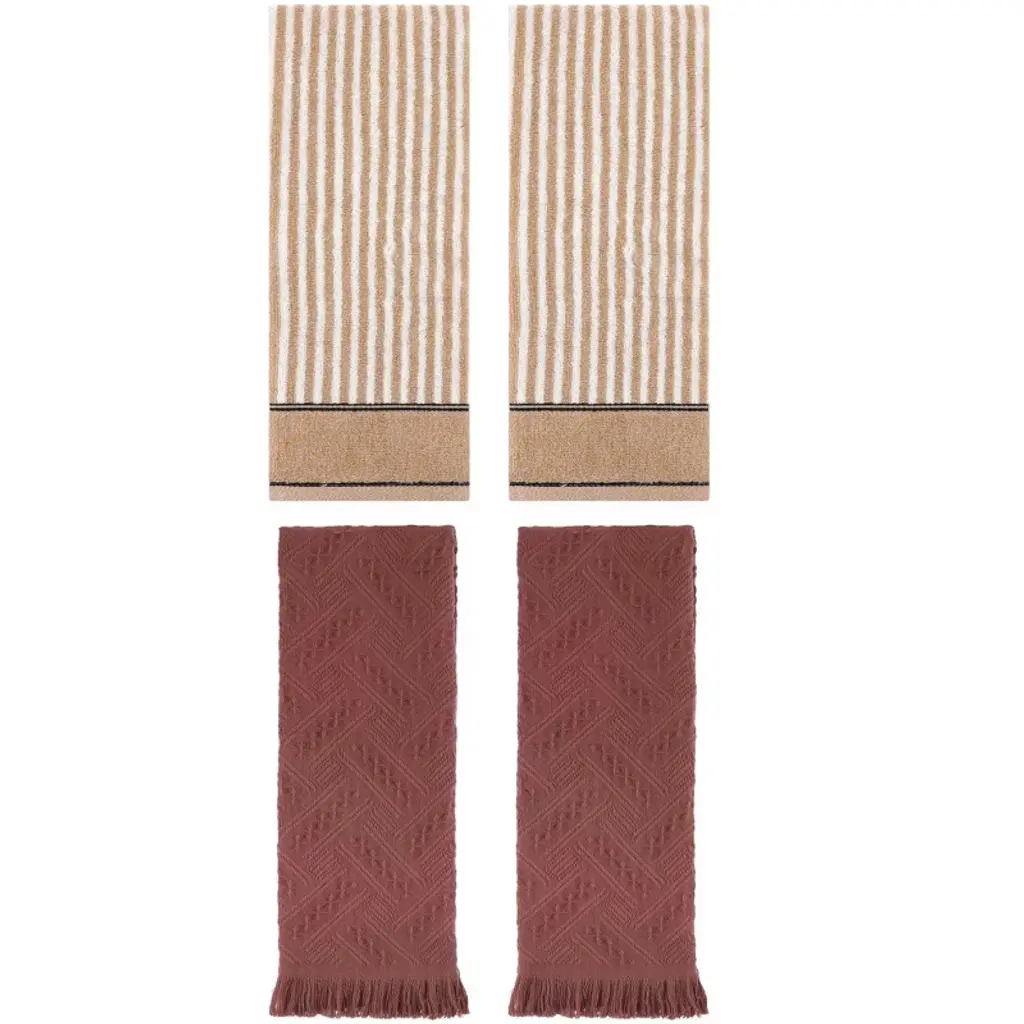 Regalwoven 4 Pcs Cotton Soft Absorbent Jacquard Pattern Boho Decorative Hand Towel 13" X 29" Brown