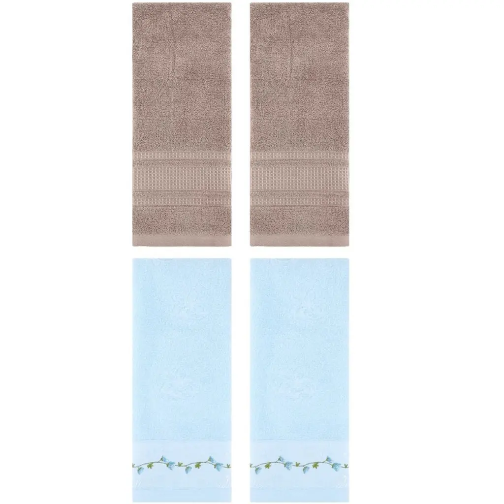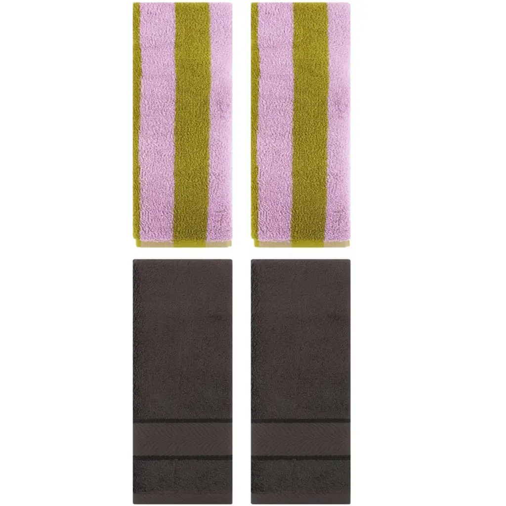 Regalwoven 4 Pcs Cotton Soft Absorbent Stripe Pattern Bathroom Hand Towel 14" X 30" Pink Brown/light Blue