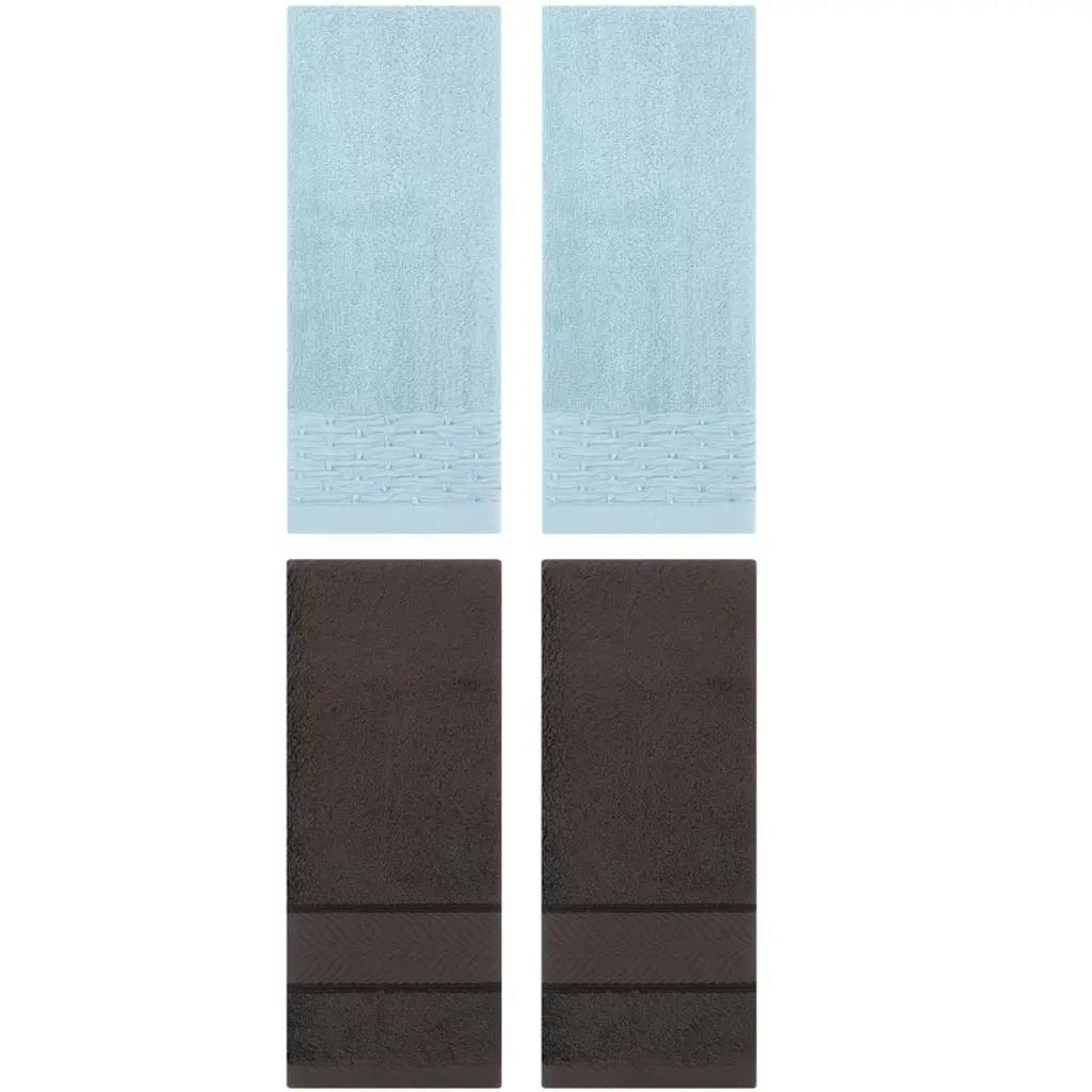 Regalwoven 4 Pcs Cotton Soft Bathroom Hand Towel 14" X 30" Blue/dark Grey