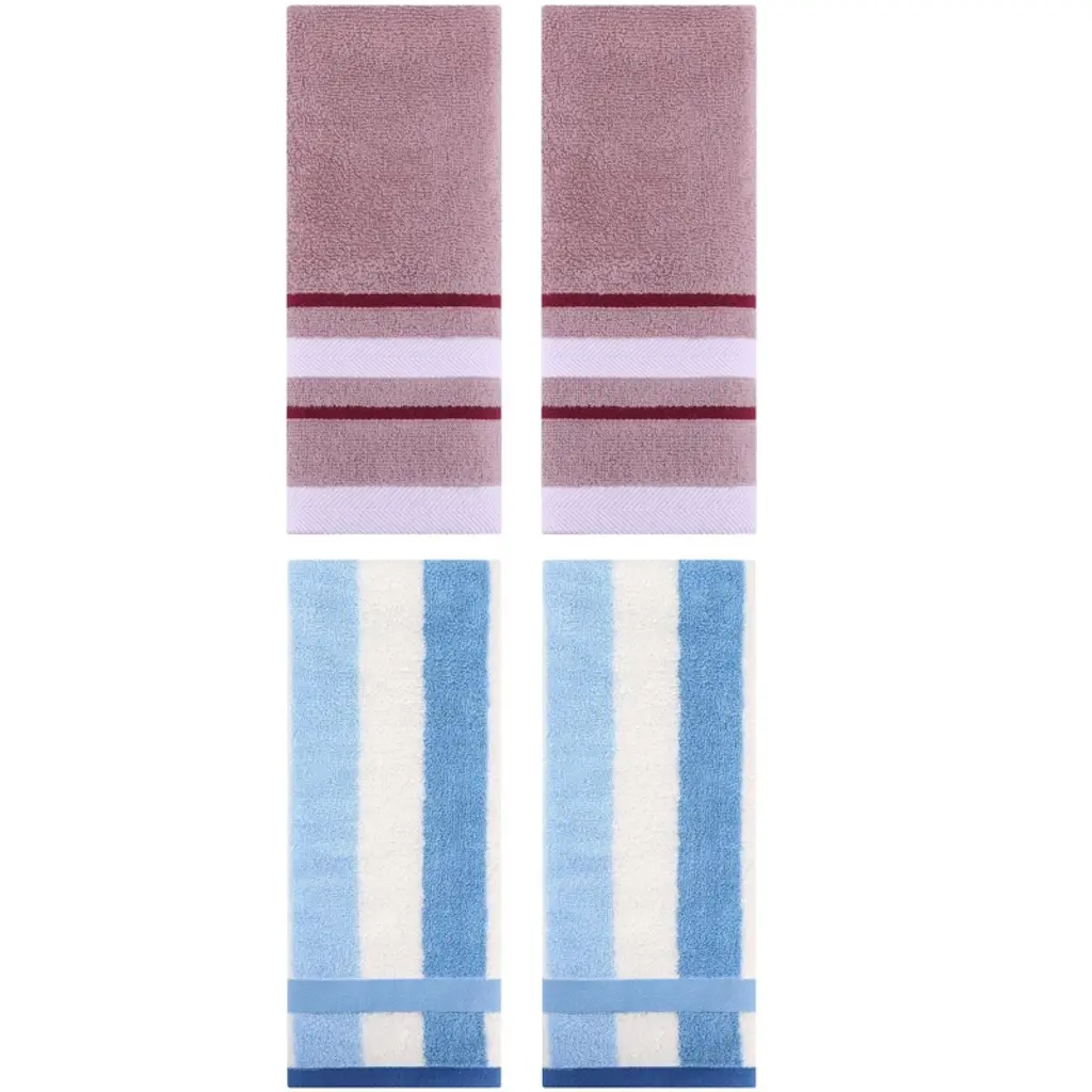 Regalwoven 4 Pcs Soft Comfortable Absorbent Bathroom Decorative Hand Towel 13" X 29" Blue/brown
