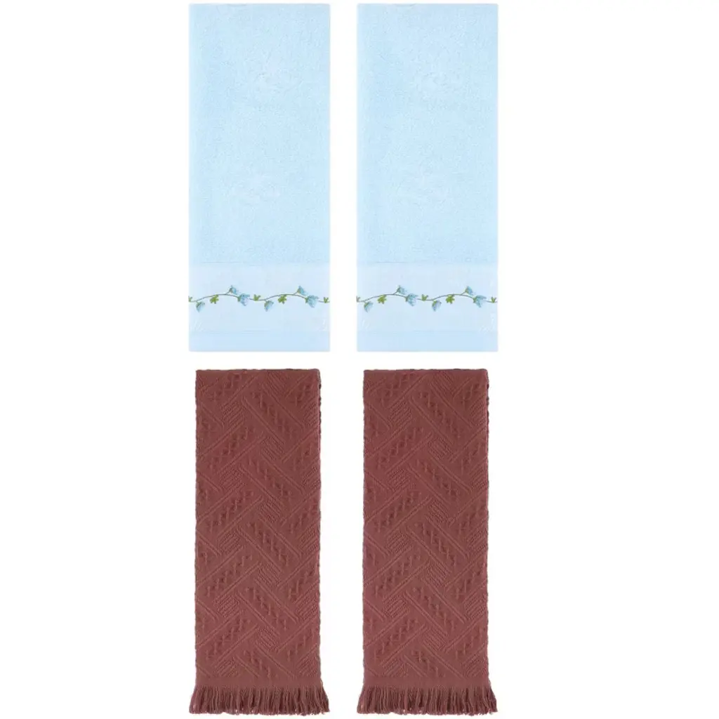Regalwoven 4 Pcs Solid Cotton Soft Absorbent Waffle Design Hand Towel 13" X 29" Brown/pink