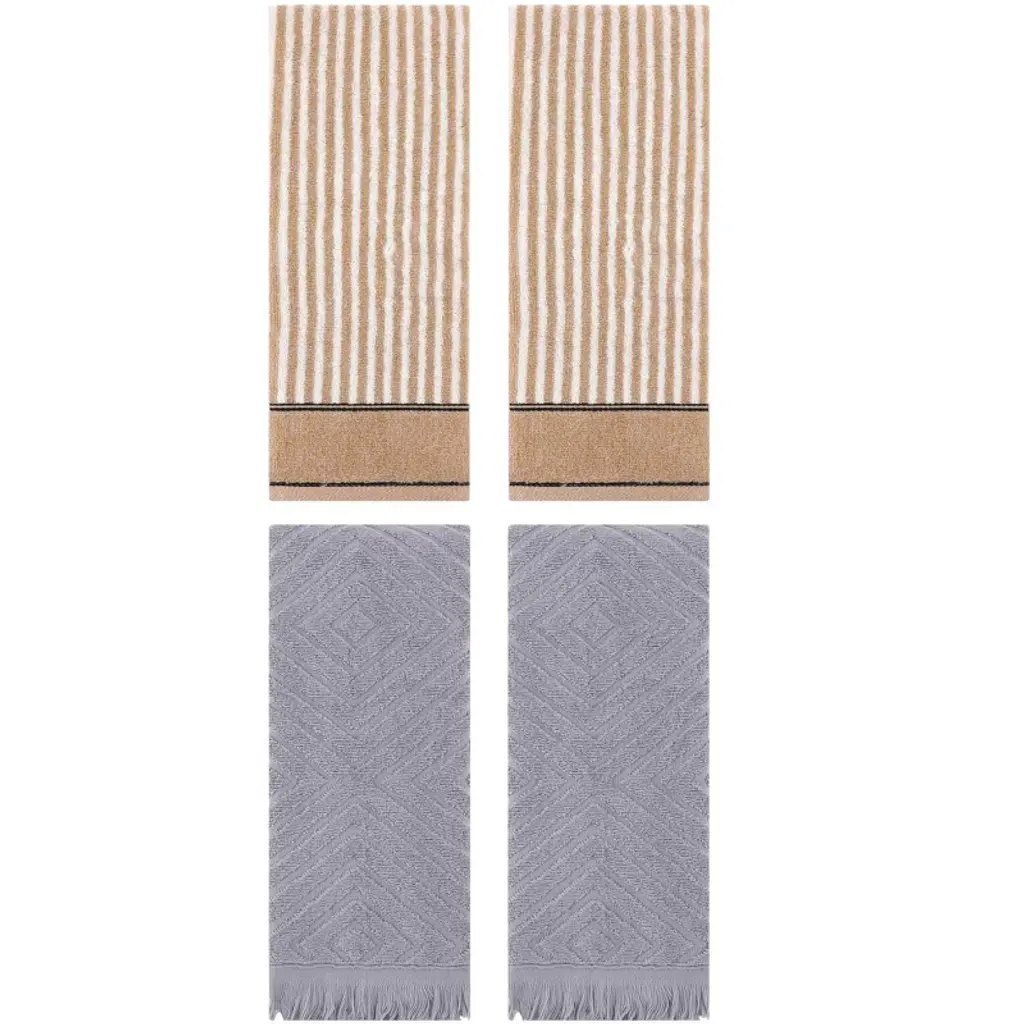 Regalwoven 4 Pcs Striped Comfortable Quick Drying Non-linting Hand Towel 14" X 30" Beige/dark Brown
