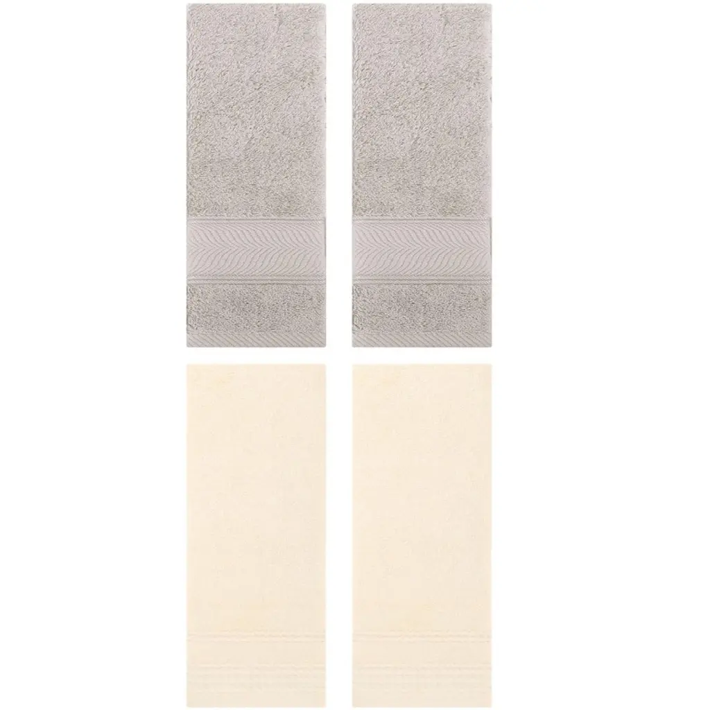 Regalwoven 4 Pcs Striped Comfortable Quick Drying Non-linting Hand Towel 14" X 30" Beige/light Grey