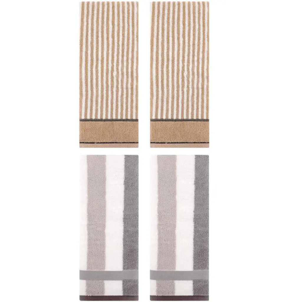 Regalwoven 4 Pcs Striped Pattern Soft Absorbent Bathroom Hand Towels 13 X 29 Inch Brown/grey
