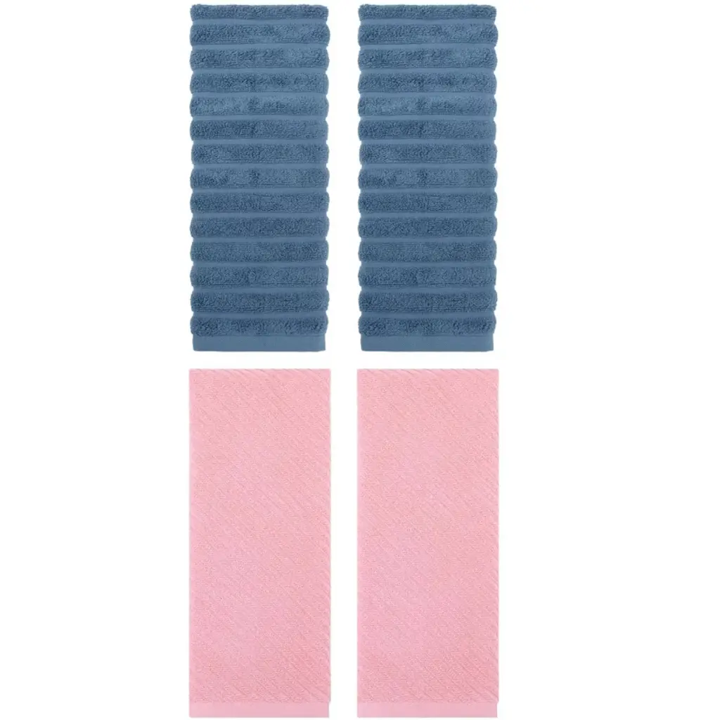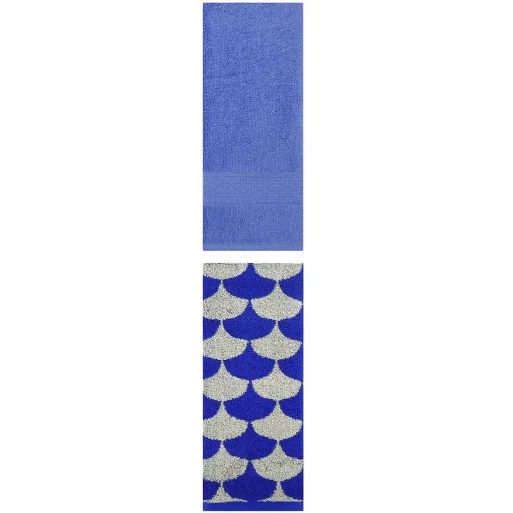 Regalwoven 5 Pack Cotton Soft Absorbent Geometric Pattern Hand Towels 13" X 29" Blue/green