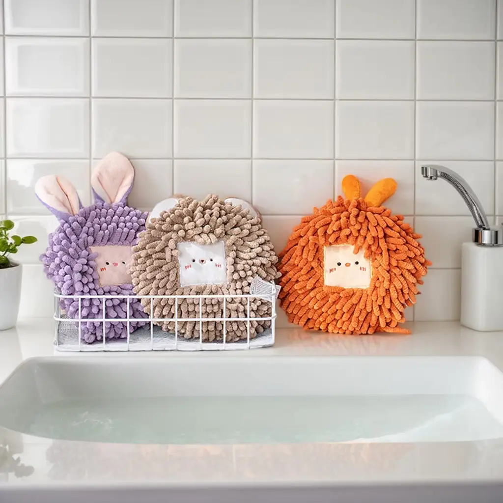 Regalwoven Absorbent Soft Chenille Cartoon Alpaca Fuzzy Ball Bathroom Hanging Hand Towels 7" X 7"/7" X 11" 2 Pcs Dark Grey/indian Red