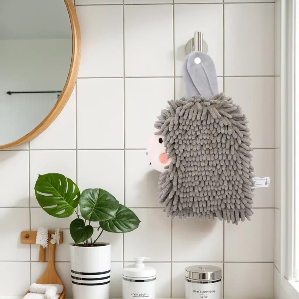 Regalwoven Alpaca Soft Absorbent Chenille Decorative Fuzzy Ball Hand Towel 7" X 11" 1 Pc Grey
